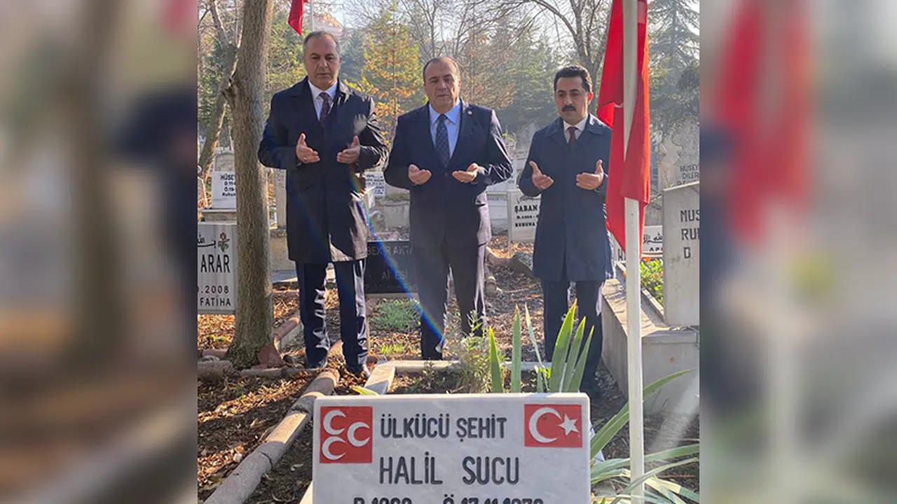 Ülkü Ocakları’ndan yapılan açıklamada, “Milletvekilimiz Sn. Vahit Kayrıcı, İl Başkanımız Mehmet İhsan Çıplak, parti ve ocak yöneticilerimiz ile birlikte Ülkücü Şehidimiz Halil Sucu'yu şehadetinin 45. sene-i devriyesinde dualarla yad ettik. Rabbim bütün şehitlerimizden ayrı ayrı razı olsun. Ruhları şad, mekanları cennet olsun... Rabbim birliğimizi, dirliğimizi bozmasın. Bu günlere kolay gelmedik! En büyük delilimiz işte burada, hayatının baharında din için, devlet için, Türklük için toprağın kara bağrında yatan şehidimizin kabridir” denildi.