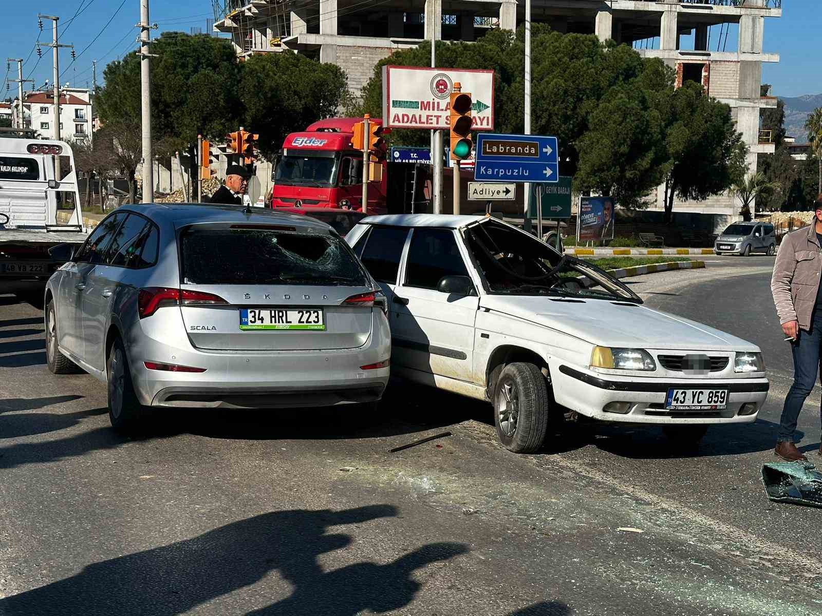 Kaza, Milas ilçesi 23 Nisan Bulvarı Adliye Kavşağı’nda meydana geldi. Edinilen bilgiye göre, 43 YC 859 plakalı otomobil, kırmızı ışıklara geldiği esnada henüz bilinmeyen bir nedenle kontrolü kaybolarak orta refüje çarptı. Çarpmanın etkisiyle takla atan otomobil, o esnada ışıklarda bekleyen 34 HRL 223 plakalı araca çarparak durabildi. Kazada otomobilin sürücüsü F.Y. (51) yaralandı. İhbar üzerine bölgeye polis ve sağlı ekipleri sevk edildi. Kısa sürede bölgeye gelen sağlık ekipleri, yaralı sürücüyü ilk müdahalenin ardından ambulansla Milas Devlet Hastanesi’ne kaldırdı. Kaza ile ilgili inceleme başlatıldı.