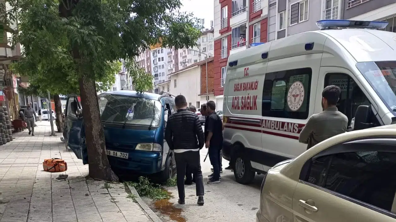 Çorum’da yol kenarındaki ağaca çarpan minibüsün sürücüsü yaralandı.