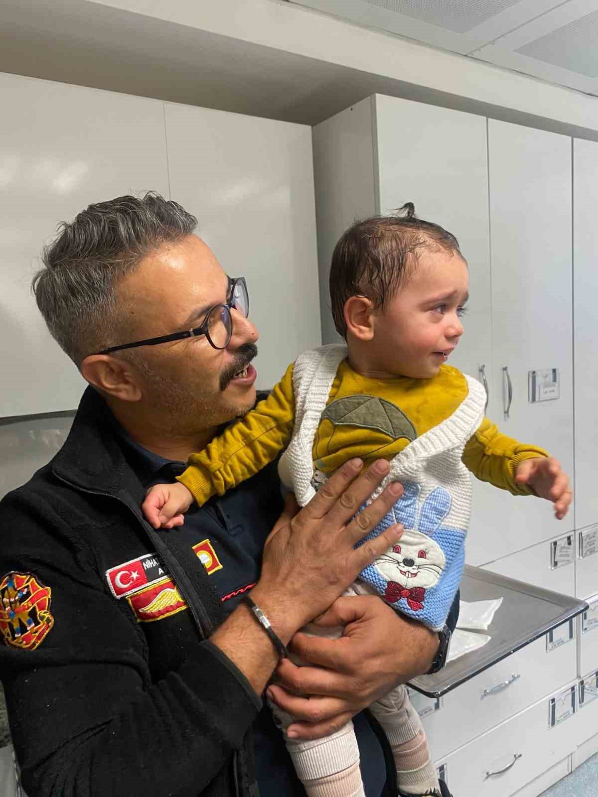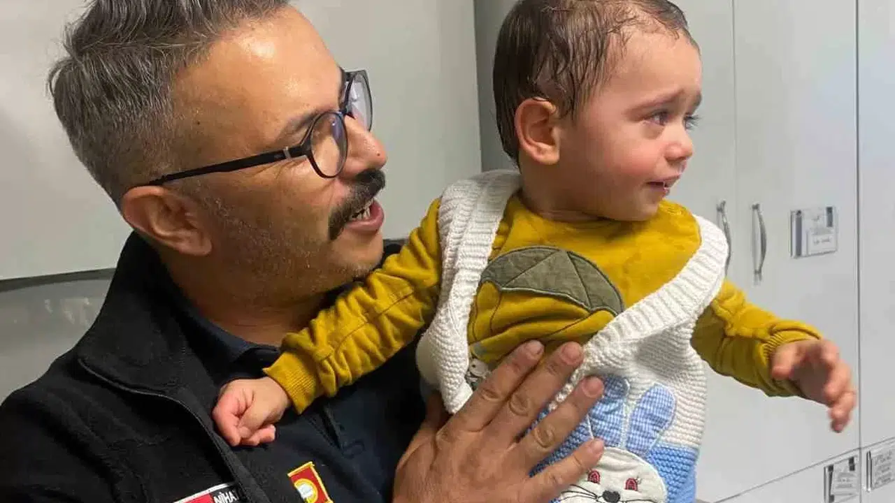 Karabük’ün Safranbolu ilçesinde ailesiyle gittiği otelde minik Emir’in parmağına sıkışan resepsiyon zilini itfaiye ekipleri çıkarttı.