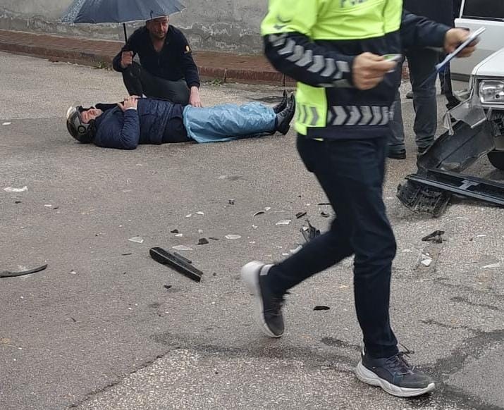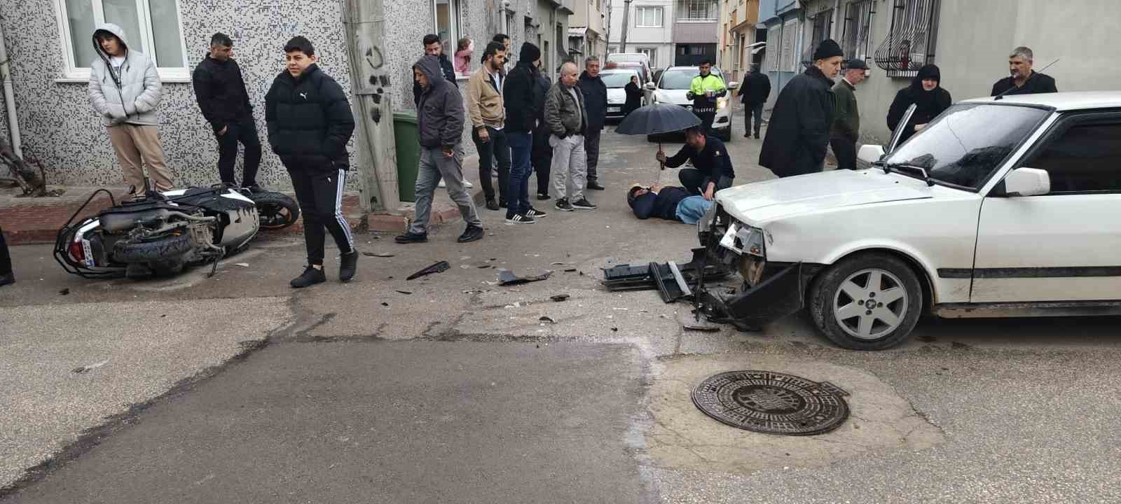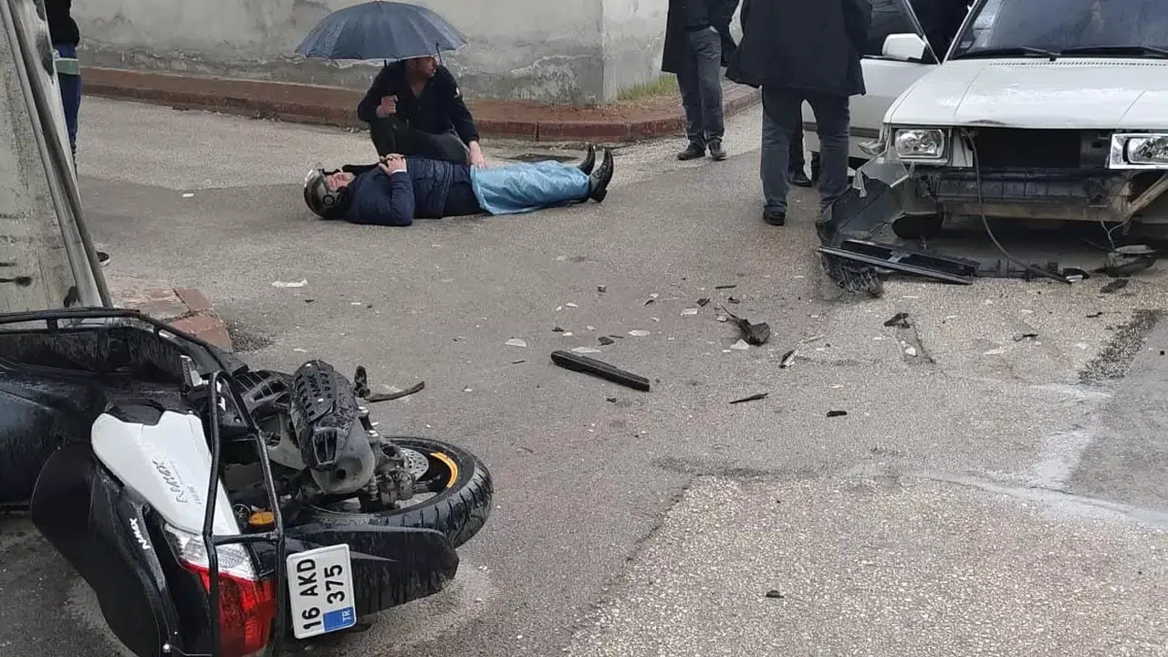 Bursa’nın İnegöl ilçesindeki kazada otomobil ile çarpışan motosiklet sürücüsü yaralandı.