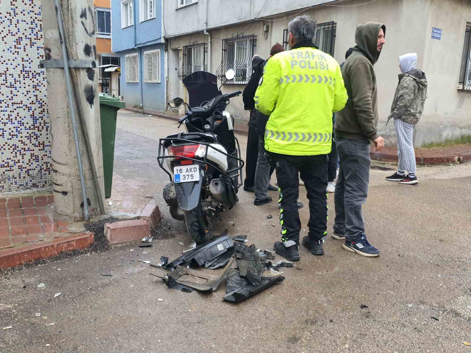 Kaza Mesudiye Mahallesi 1. Yeni Sokak’ta meydana geldi. Sürücü İbrahim K.(50) yönetimindeki 16 AKD 375 plakalı motosiklet ile Ferdi Ö. idaresindeki 16 KDA 33 plakalı otomobil çarpıştı. Çarpışmanın etkisiyle devrilen motosikletin sürücüsü yaralandı. Yaralı kaza yerine sevk edilen Ambulansla İnegöl Devlet Hastanesine kaldırıldı.