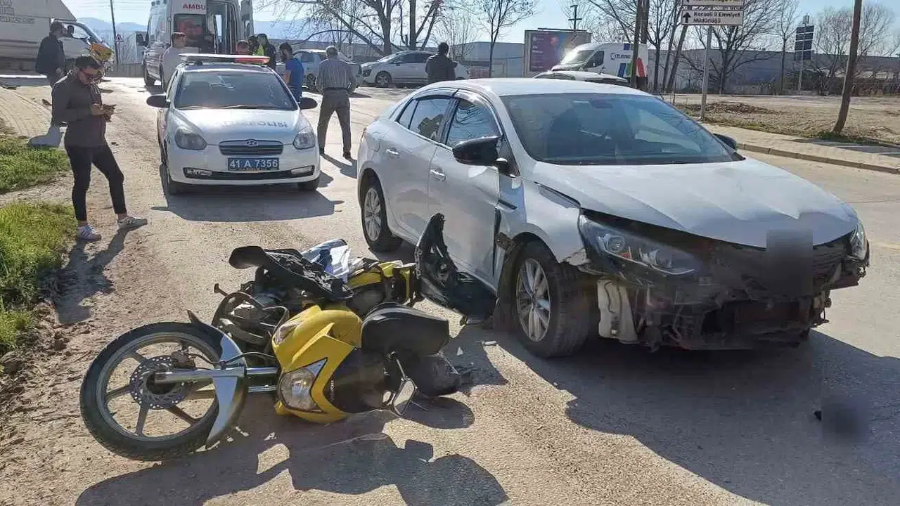 Kaza, Başiskele ilçesi Kullar Ovacık Mahallesi Başyiğit Caddesinde meydana geldi. Edinilen bilgiye göre, seyir halindeki otomobil ile motosiklet çarpıştı. Çarpışmanın etkisi ile motosiklet sürücü motordan savruldu. Kazayı gören vatandaşlar 112 Acil Çağrı Merkezine haber verdi. İhbar üzerine olay yerine sağlık ve polis ekipleri sevk edildi. Kısa sürede olay yerine gelen sağlık ekipleri, yaralı motosikletliye ilk müdahalenin ardından hastaneye götürdü. Yaralının vücudunda kırıklar olduğu öğrenildi. Kaza sebebiyle otomobil ve motor hasar aldı, polis olayla ilgili inceleme başlattı.