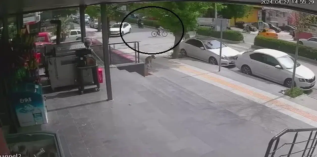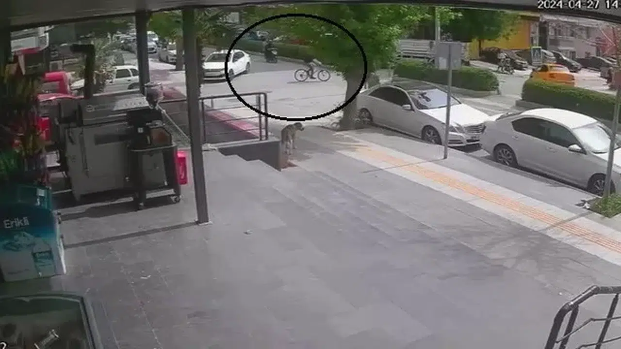 Kaza anı bir iş yerinin güvenlik kamerasına yansıdı. Görüntülerde kontrolsüz şekilde bisikletiyle ara yoldan çıkarak caddeye çıkan bisiklete seyir halindeki motosiklet çarpıyor. Çarpmanın etkisiyle motosiklet ve bisiklette bulunanlar yere düşüyor.