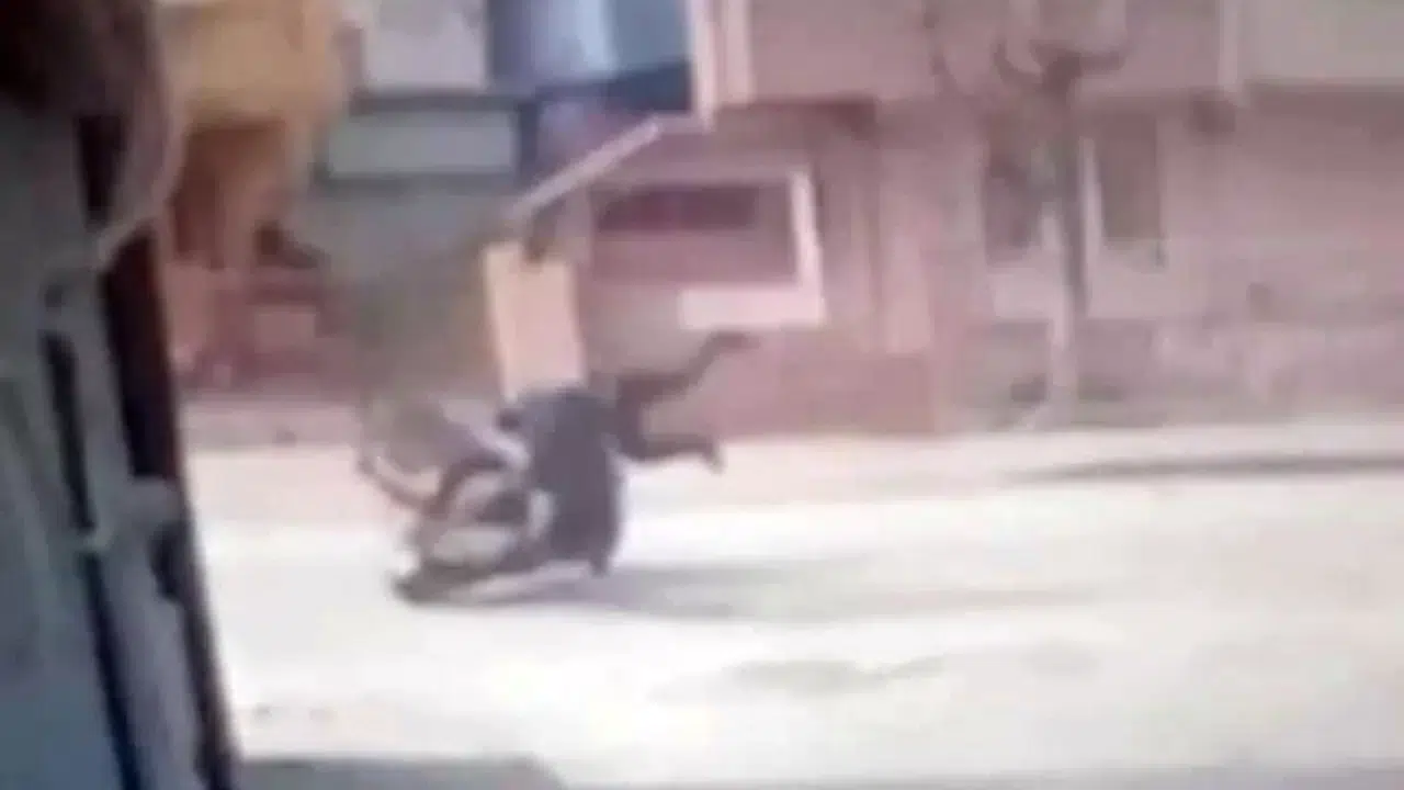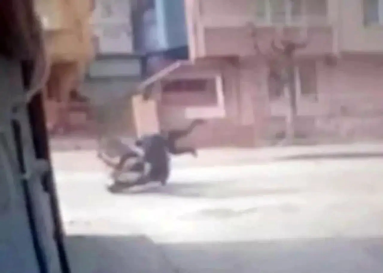 Bursa’nın İnegöl ilçesinde motosikletin yayaya çarptığı kazada 2 kişi yaralandı. Kaza anı bir iş yerinin güvenlik kamerasına saniye saniye yansıdı.