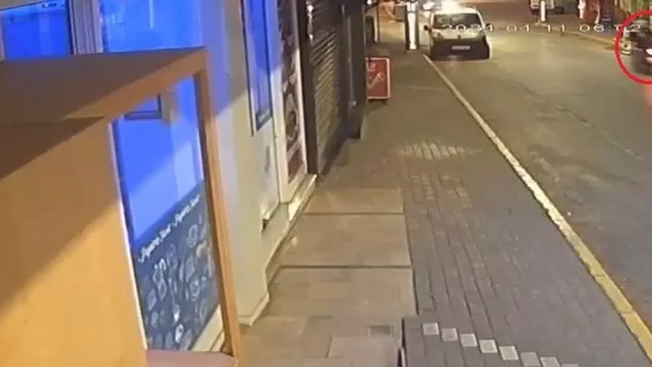 Öte yandan, kaza anının güvenlik kamerası kaydı ortaya çıktı. Görüntüde, caddeye çıkan özel halk otobüsünün karşı istikametten gelen motosiklet ile kafa kafaya çarpıştığı görülüyor. Ayrıca, çarpmanın şiddetiyle motosikletlin yola savrulduğu anlar da saniye saniye kaydedildi.