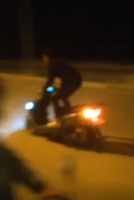 Öte yandan, Milas - Bodrum karayolunda kaydedilen başka bir görüntüde bir motosiklet sürücüsünün motosikletini uzanarak sürdüğü kameralar tarafından anbean kaydedildi.