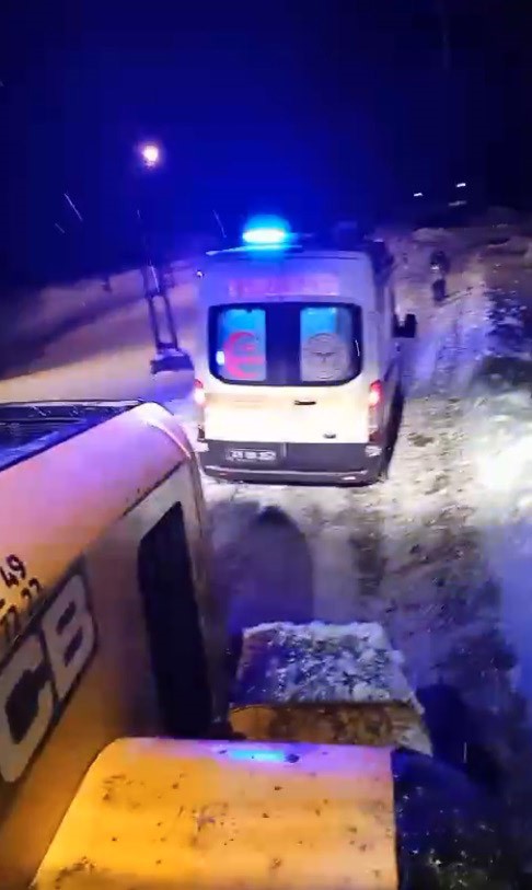Öte yandan Varto ilçesine bağlı Görgü köyünde yaşayan 95 yaşındaki prostat kanseri hastasının rahatsızlanması üzerine 112 sağlık ekiplerine haber verildi. Hastaya müdahale etmek için hızla bölgeye giden 112 sağlık ekiplerinin bulunduğu ambulans, karla kaplı yolda kayarak kara saplandı. Haber verilmesi üzerine bölgeye sevk edilen Muş İl Özel İdare ekipleri, çeki halatıyla ambulansı saplandığı yerden çıkardı. Saplandıkları yerden çıkarılan sağlık çalışanları daha sonra hastayı alarak Varto Devlet Hastanesine getirdi.