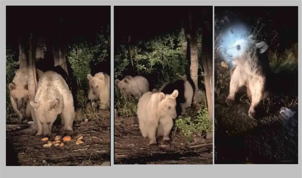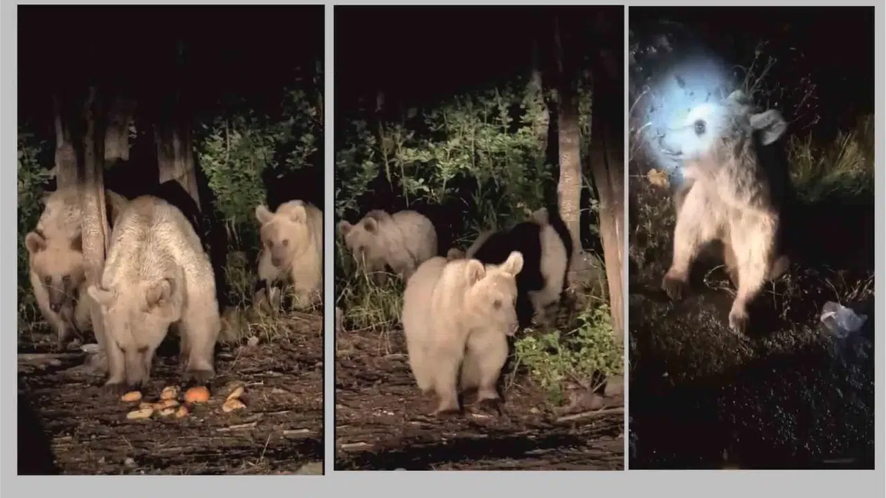 Ahlat’tan gelip Nemrut Krater Gölü’nde yaşayan ayıları ziyaret eden Asım Araboğa isimli vatandaş, bu sefer boz ayı sürüsüyle karşılaştı. Anne ayılar ve yavrulardan oluşan ayı sürü şaşırttı. Hayvansever Asım Araboğa’da gece vakti yem aramaya çıkan ayı sürüsünü eliyle besledi. Araboğa aracının yanına gelen yavru ayıya da şeker vermeyi ihmal etmedi.