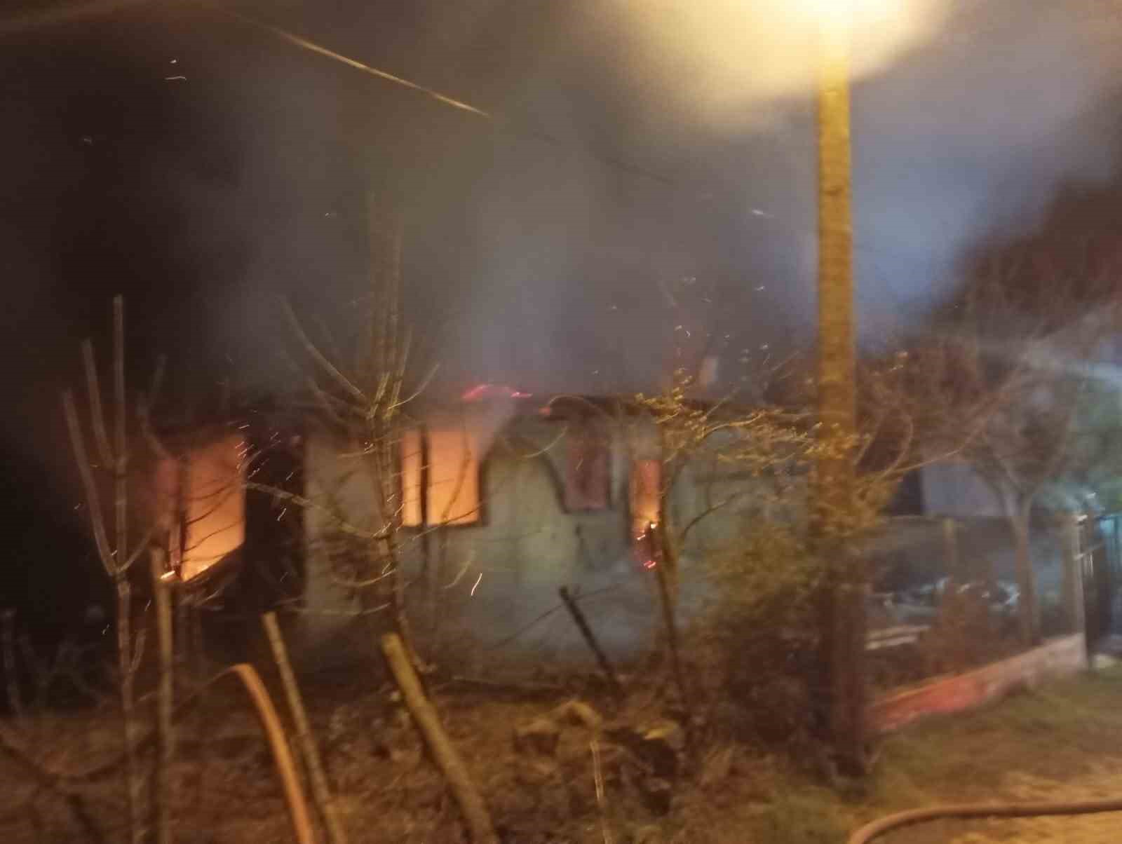 Alevlerin tamamen kapladığı yangında ev yanarak kullanılamaz hale geldi.