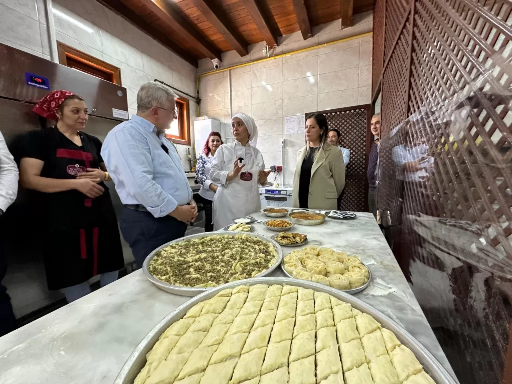 Orta Karadeniz Kalkınma Ajansı (OKA) desteklediği projeler ile bölgesinde ekonomiye ve istihdama katkı sunarken, Anadolu’nun değerlerini de gün yüzüne çıkarıyor. Sanayi ve Teknoloji Bakanlığı, Kalkınma Ajansları Genel Müdürlüğü koordinasyonunda OKA tarafından uygulanan 2023 Yılı Sosyal Gelişmeyi Destekleme Programı (SOGEP) kapsamında desteklenen Çorum Belediyesi’nin uygulayıcısı olduğu “Çorum Belediyesi İşim Gücüm Üretim Projesi” ile Çorum mutfağında öne çıkan hamur işleri ve unlu mamüller odaklı lezzetlere yönelik mutfak atölyesi kuruldu. Bir başka OKA destekli proje ile restore edilerek şehre kazandırılan Veli Paşa Hanı‘nda kurulan mutfak atölyesinde Çorum Has Baklavası, Çorum Su Böreği, coğrafi işaret tescilli Çorum Kuru Mantısı, Çorum Şekerlemesi yapılıyor. Mutfak atölyesinde, Çorum’da gastronomi alanında hizmet veren işletmelerde çalışan personel ve sektörde yer almak isteyen işsiz kadınlar, yöresel yemeklerin standardizasyonu, uygulanması gereken püf noktalar üzerine eğitiliyor. Bu kapsamda Çorum’da, gastronomi sektörüne nitelikli eleman yetiştirilmesi ve iş hayatına kazandırılması hedefleniyor.