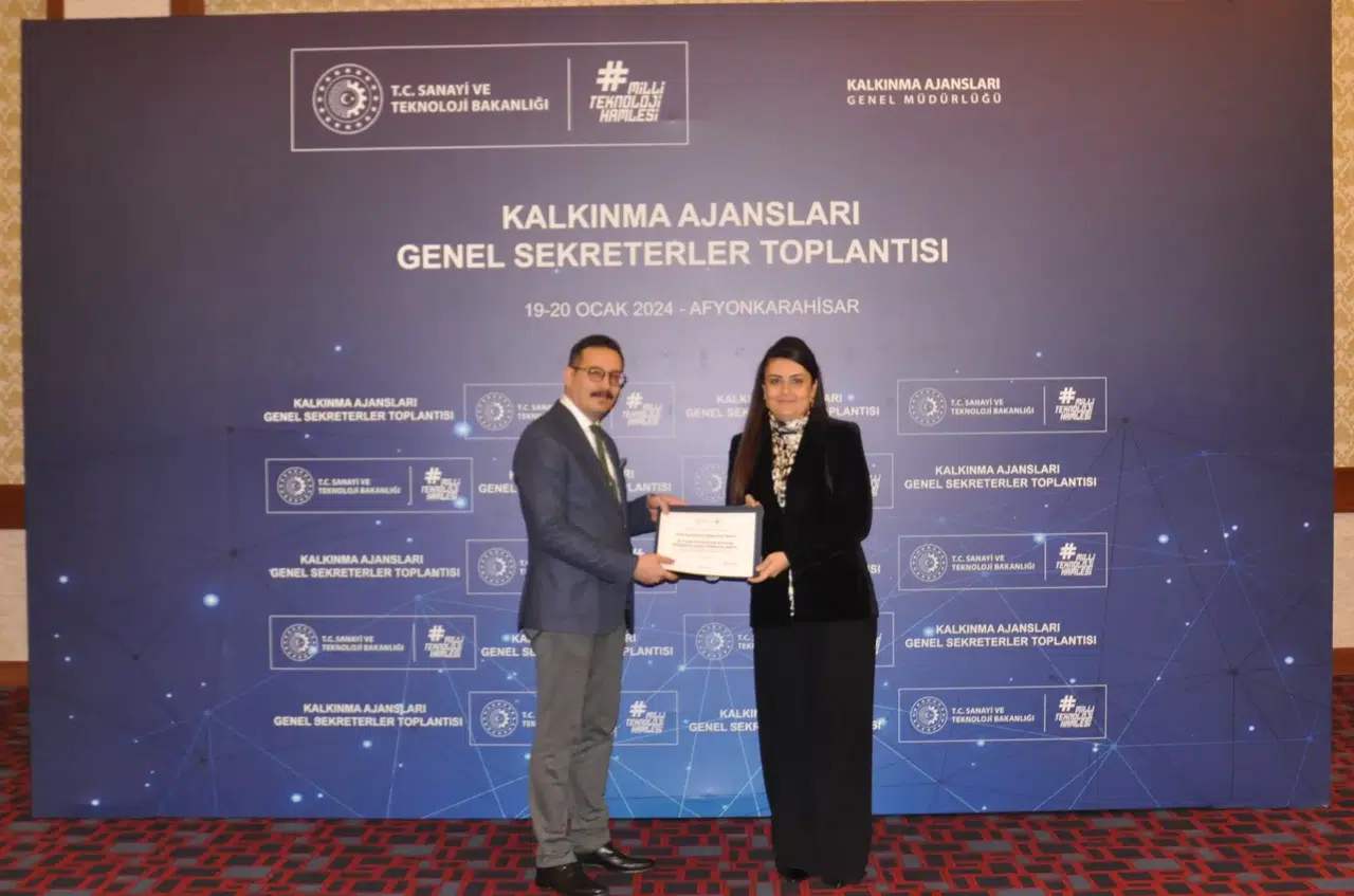 Başarı sertifikasını, Kalkınma Ajansları Genel Müdürü Ahmet Şimşek’ten alan OKA Genel Sekreter Vekili Mehlika Dicle, “Çalışmalarımızın takdir görmesi gurur verici. Bu başarı hikâyesinin yazılmasında emeği geçen tüm ekip arkadaşlarımı yürekten kutluyorum” ifadelerini kullandı.