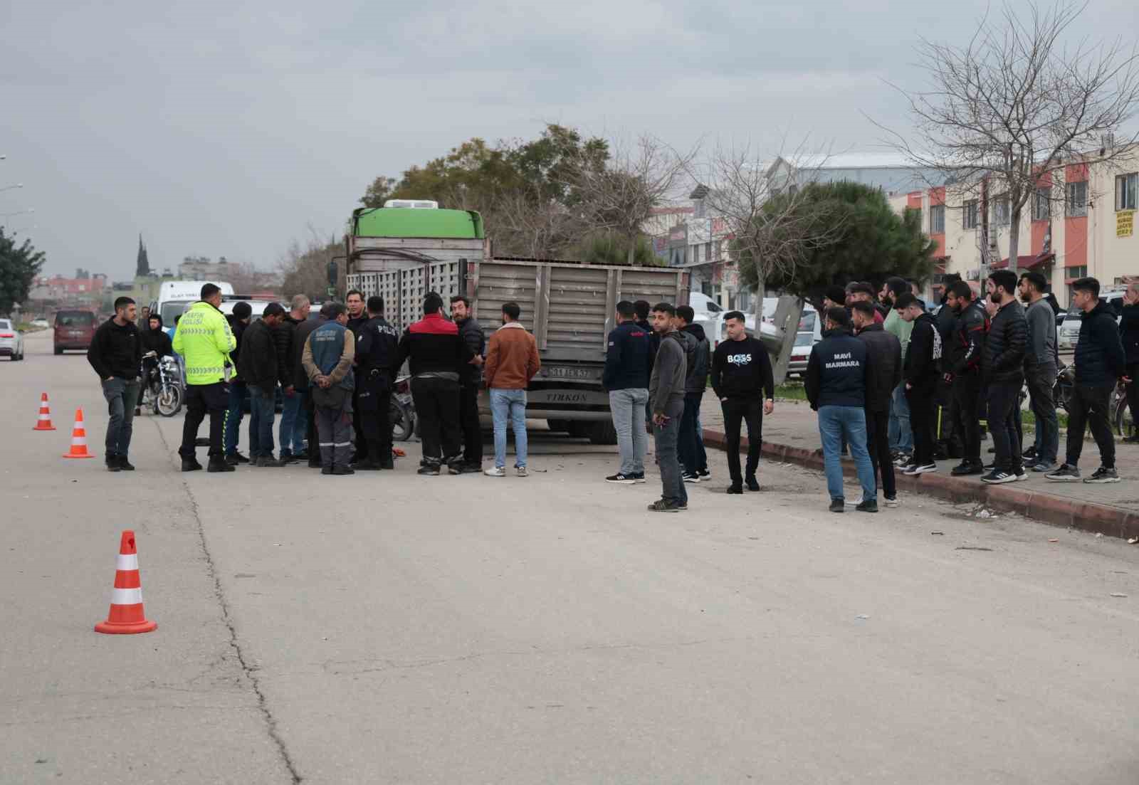 Adana’da motosikletin park halindeki tıra arkadan çarptığı kazada motosiklet sürücüsü olay yerinde hayatını kaybetti. Çevredeki vatandaşlar kazayı film gibi izledi.