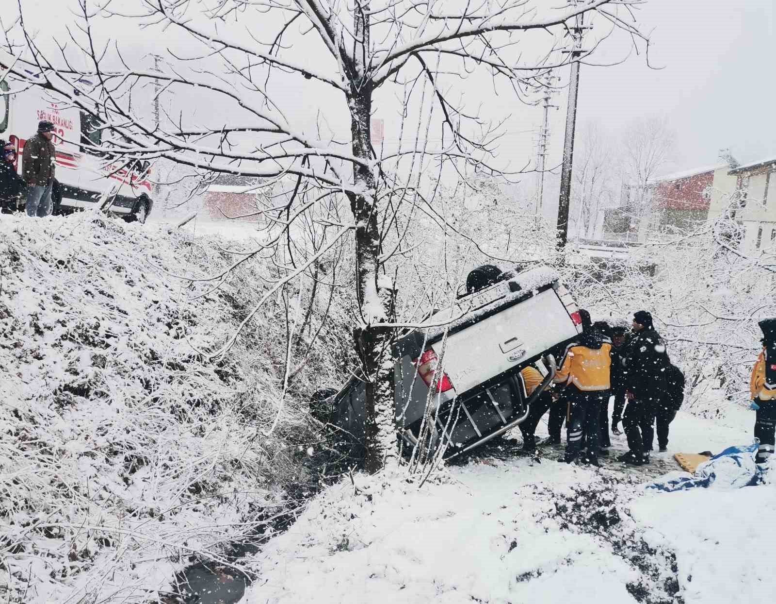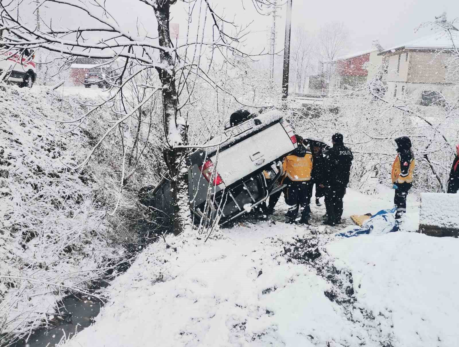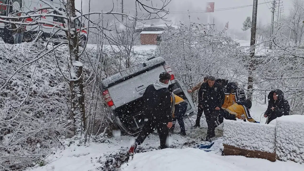 Kaza, ilçenin Hanyanı Mahallesi Çaybaşı Karayolu üzerinde meydana geldi. Edinilen bilgiye göre, Çaybaşı ilçesinin İlküvez Mahallesi’ndeki evine seyir halinde olan Mehmet Kaya yönetimindeki 52 AAR 317 plakalı kamyonet, yoğun kar yağışı nedeniyle kontrolden çıkarak fındık bahçesine yuvarlandı.