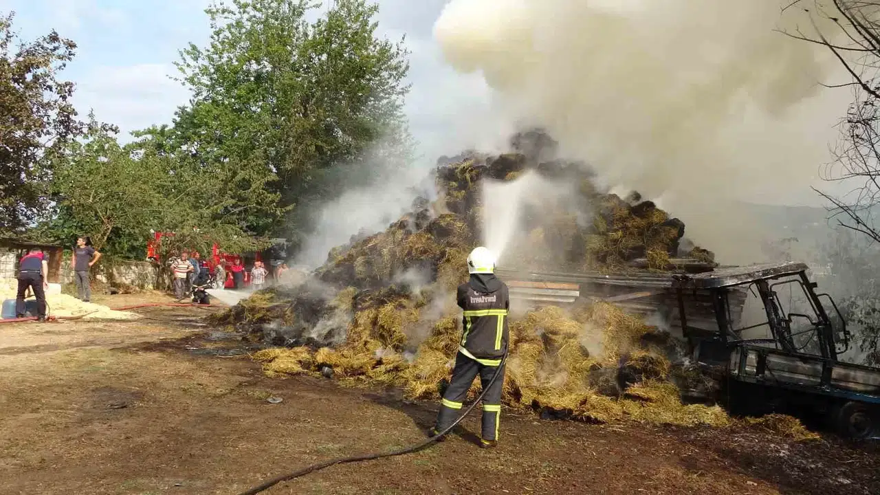 Ordu’nun Perşembe ilçesinde bir mandırada çıkan yangında 100 ton saman, kamyonet ve tarım araçları zarar gördü.