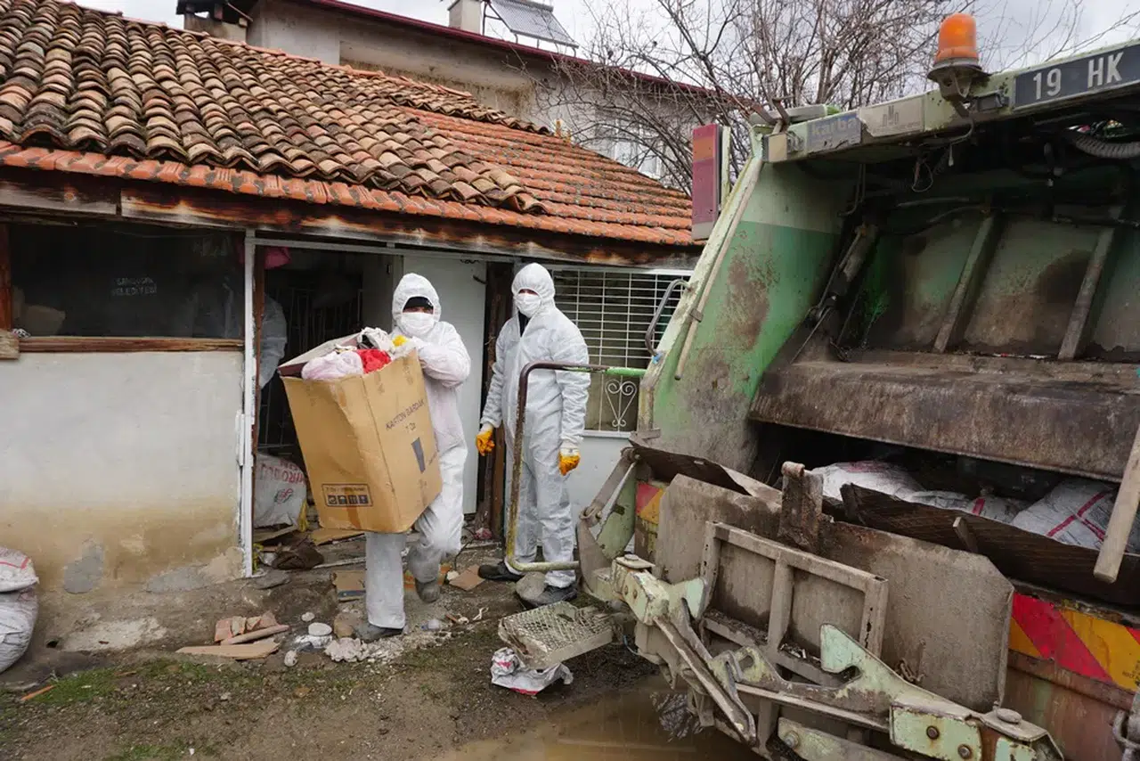 Çay Mahallesi'nde 68 yaşındaki D.D.'ye ait müstakil evden kötü koku yayıldığı ihbarı üzerine adrese giden Osmancık Belediyesi Zabıta ve Temizlik İşleri Müdürlüğü ekipleri, evin çöplerle dolu olduğunu tespit etti.