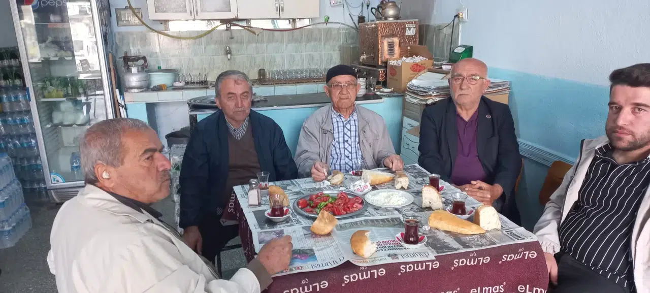 Namaz sonrası kahvehanede bir araya gelen esnaf, evlerinden getirdikleri ekmek, çökelek, börek gibi yiyeceklerle kahvaltı yaparak güne başlıyor.