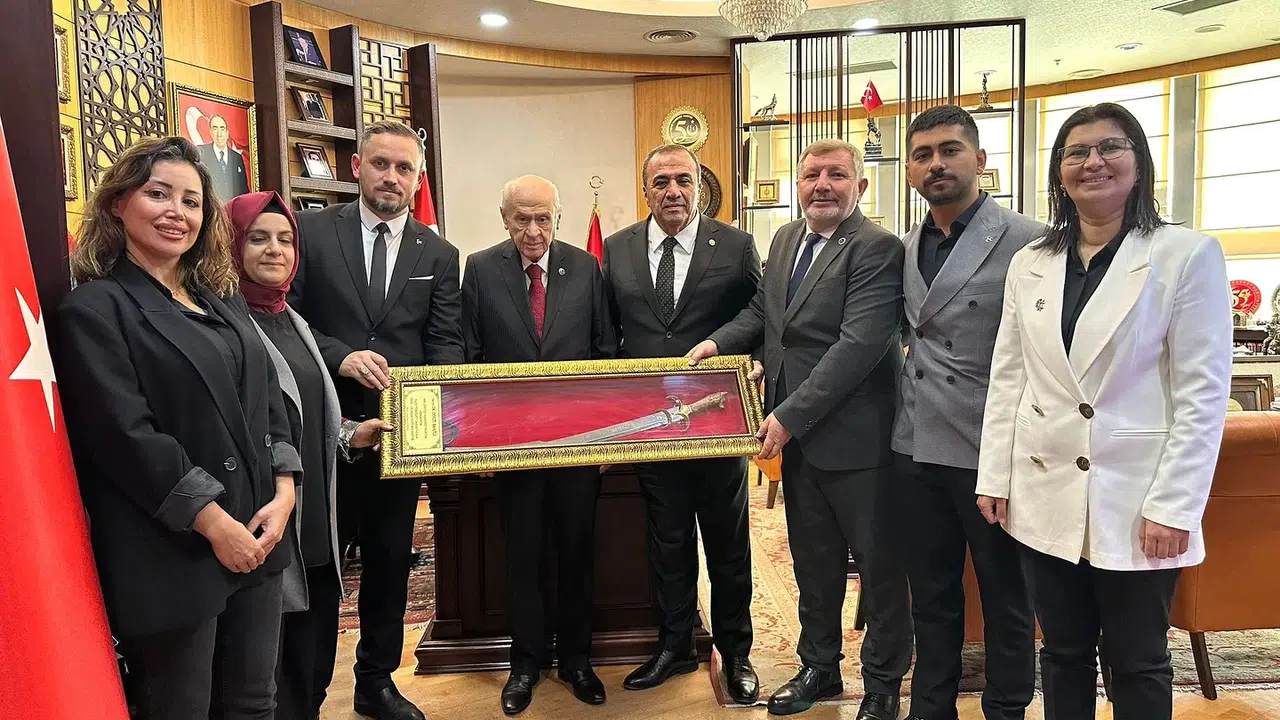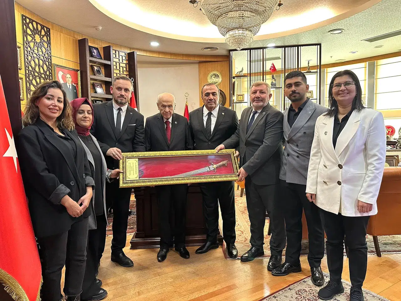 Osmancıklılardan MHP Genel Başkanı Devlet Bahçeli’ye el emeği kılıç hediyesi.