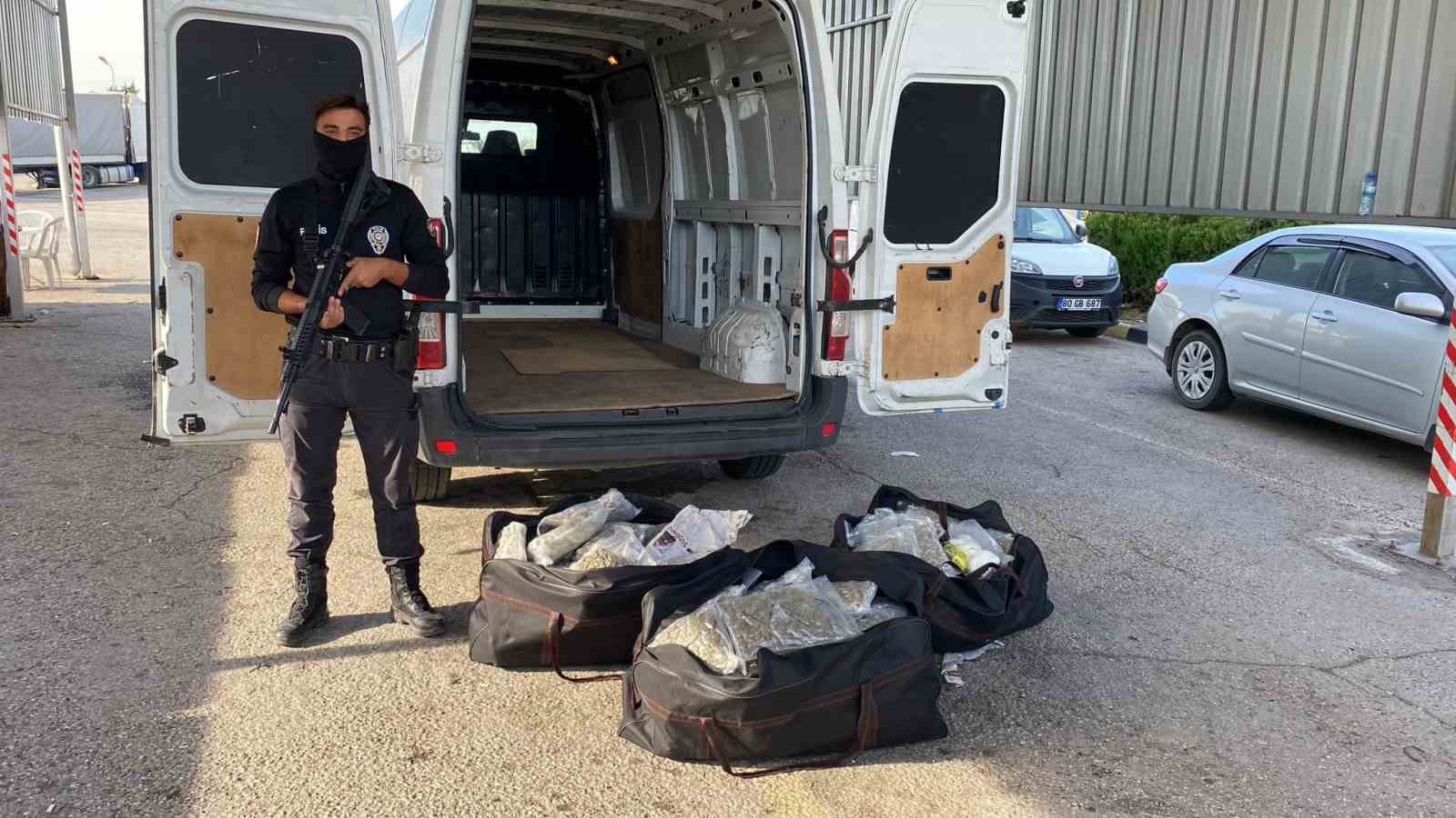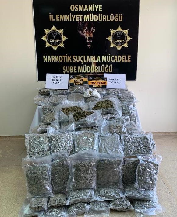 Osmaniye’de uygulama noktasında durdurulan panelvan tarzı minibüste 46 kilo 200 gram skunk ve 900 gram toz esrar ele geçirildi.