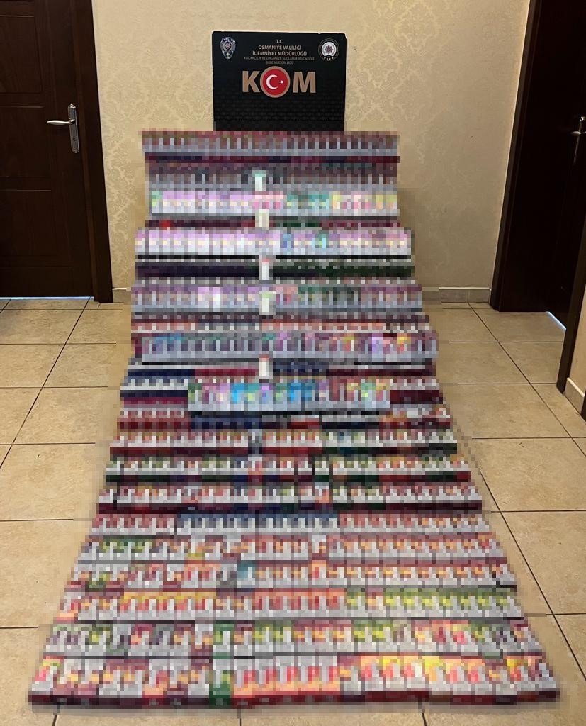 Osmaniye Emniyet Müdürlüğü Kaçakçılık ve Organize Suçlarla Mücadele (KOM) Şube Müdürlüğü ekipleri, yaptıkları takip ve çalışma doğrultusunda uygulama noktasında şüphe üzerine bir tırı durdurdu. Yapılan aramalarda piyasa değeri 1 milyon 500 bin Türk Lirası olan gümrük kaçağı 2 bin elektronik sigara ve 340 paket sigara ele geçirildi.