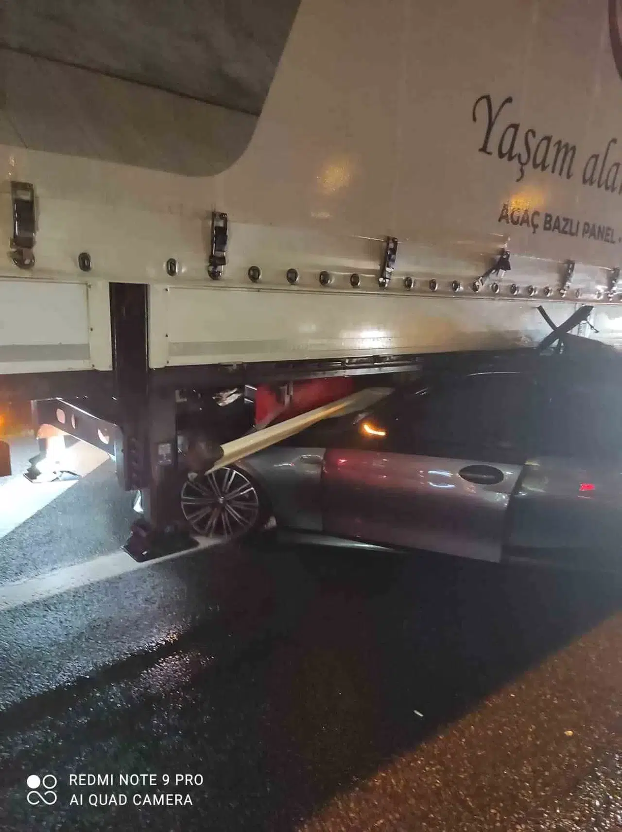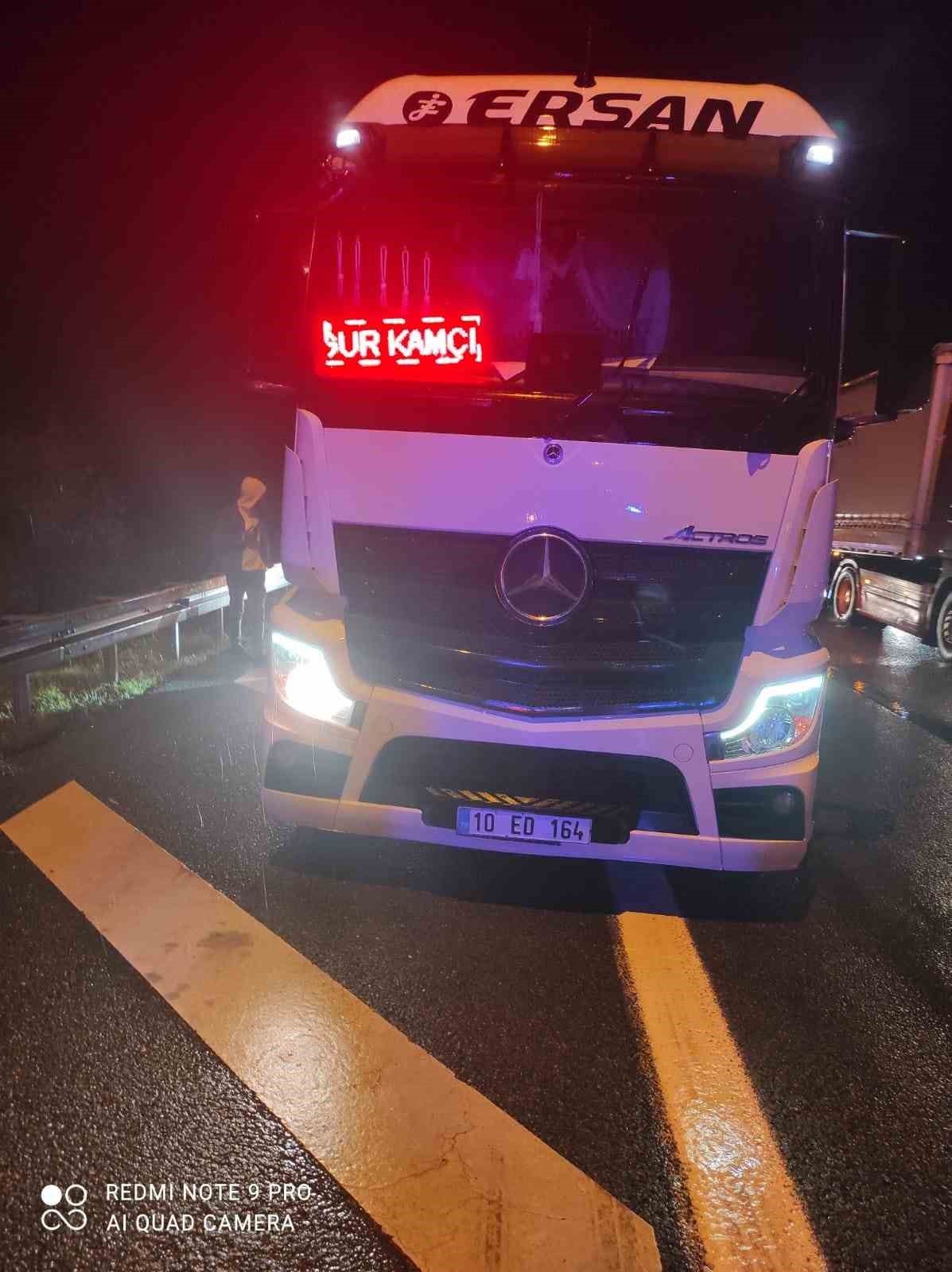 Kaza, 21:30 sıralarında Bursa Otobanı Selçukgazi Tünel mevkiinde meydana geldi. Edinilen bilgiye göre, Mahmut D. (22) idaresindeki 34 SRH 30 plakalı otomobil yağış nedeniyle kayganlaşan yolda sürücüsünün idaresinden çıkarak yine aynı istikamette seyir halindeki 10 ED 164 plakalı tırın dorsesine çarptı. İhbar üzerine olay yerine çok sayıda ambulans ve polis ekibi sevk edildi. Kazada yaralanan otomobil sürücüsü Mahmut D., olay yerinde yapılan ilk müdahalenin ardından Bursa Şehir Hastanesi’ne kaldırıldı.