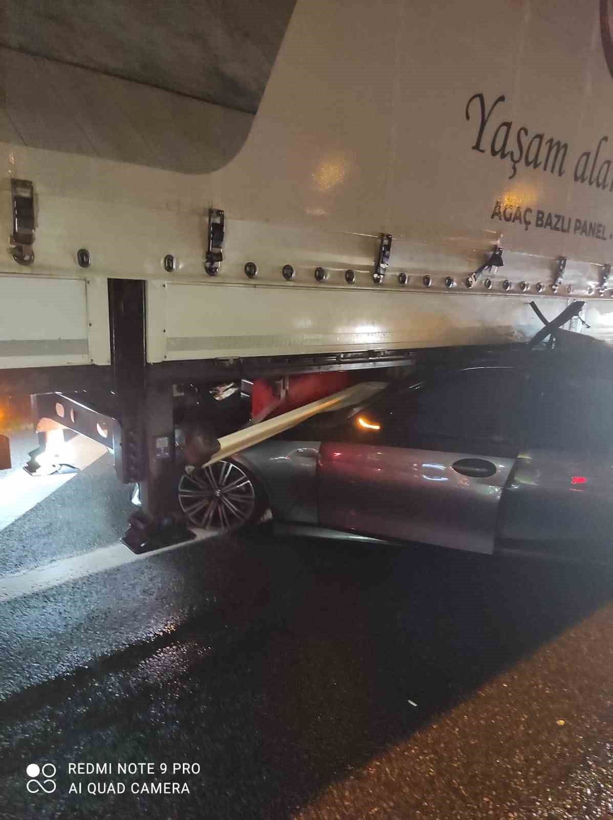 Otobanda Tırın Altına Giren Arabada Can Pazarı: 1 Yaralı
