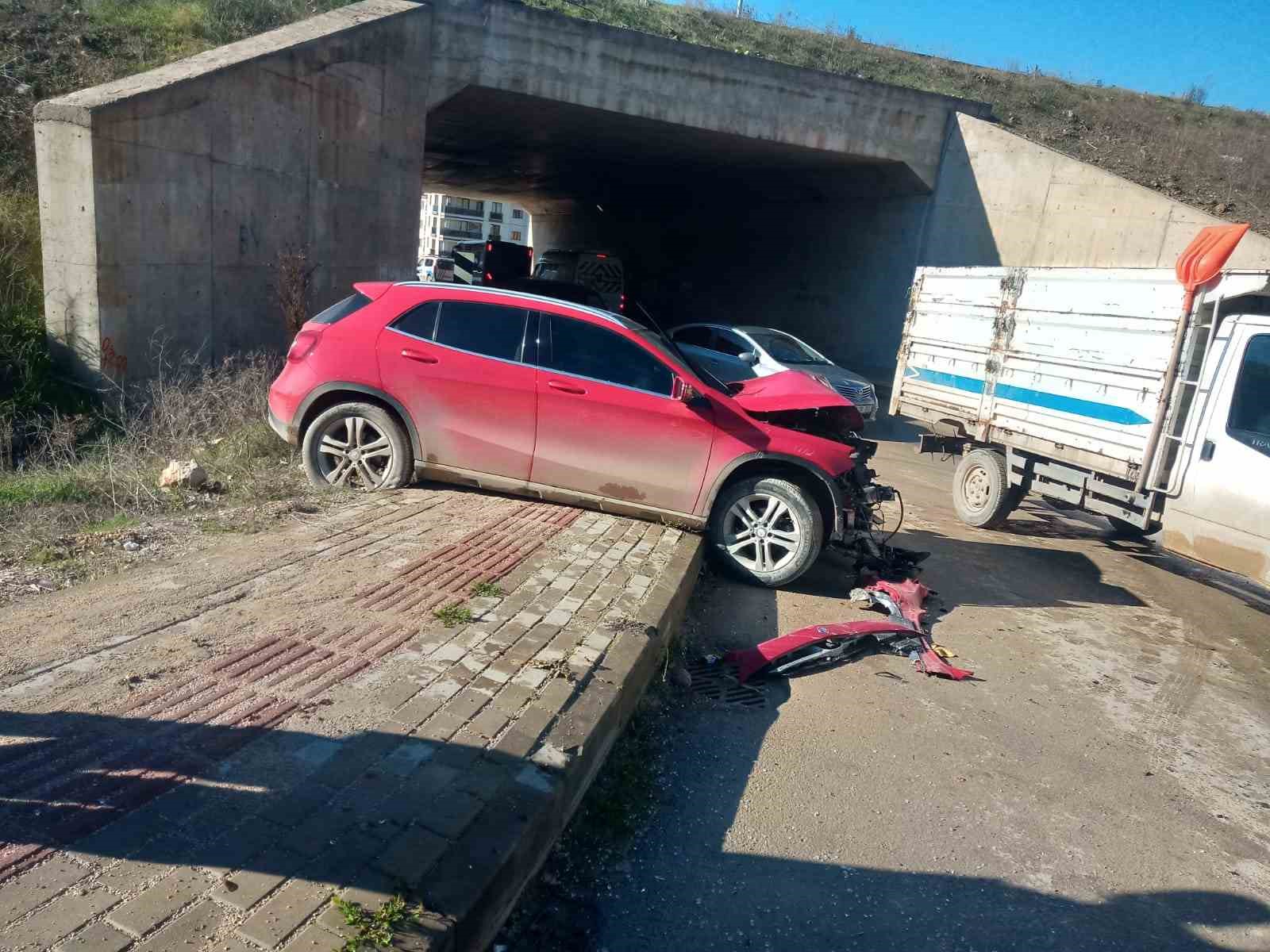 Kaza, saat 12.00 sıralarında İnegöl-Alanyurt yolu Esentepe Mahallesi mevkiindeki altgeçitte meydana geldi. Altgeçitten geçmekte olan sürücü Hande E.(33) yönetimindeki 16 HE 923 plakalı otomobil, karşı yönden gelen sürücü Medeni B.(60) yönetimindeki 16 M 06080 plakalı özel halk otobüsü ile kafa kafaya çarpıştı. Çarpışmanın etkisiyle otomobil savruldu. Kaza sonucu otomobilin sürücüsü yaralandı. İhbar üzerine olay yerine polis ve sağlık ekipleri sevk edildi. Yaralı sürücü, kaza yerine sevk edilen ambulans ile İnegöl Devlet Hastanesi’ne kaldırıldı.
