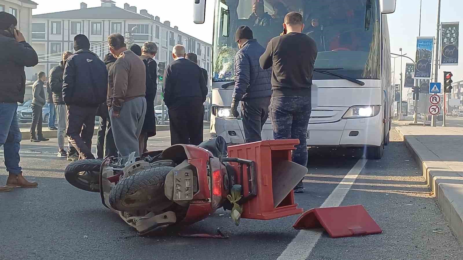 Kaza sabah saatlerinde Düzce Merkez Bahçeşehir bağlantı yolu üzerinde meydana geldi. Edinilen bilgilere göre Düzce şehir merkezinden Bahçeşehir bölgesine gitmekte olan F. Ö. idaresindeki motosiklet ile aynı istikamete seyir halindeki S. A.’nın kullandığı 16 SV 939 plakalı yolcu otobüsü Metek ışıklı kavşakta çarpıştı. Kazada motosiklet sürücüsü yere savrularak yaralandı.