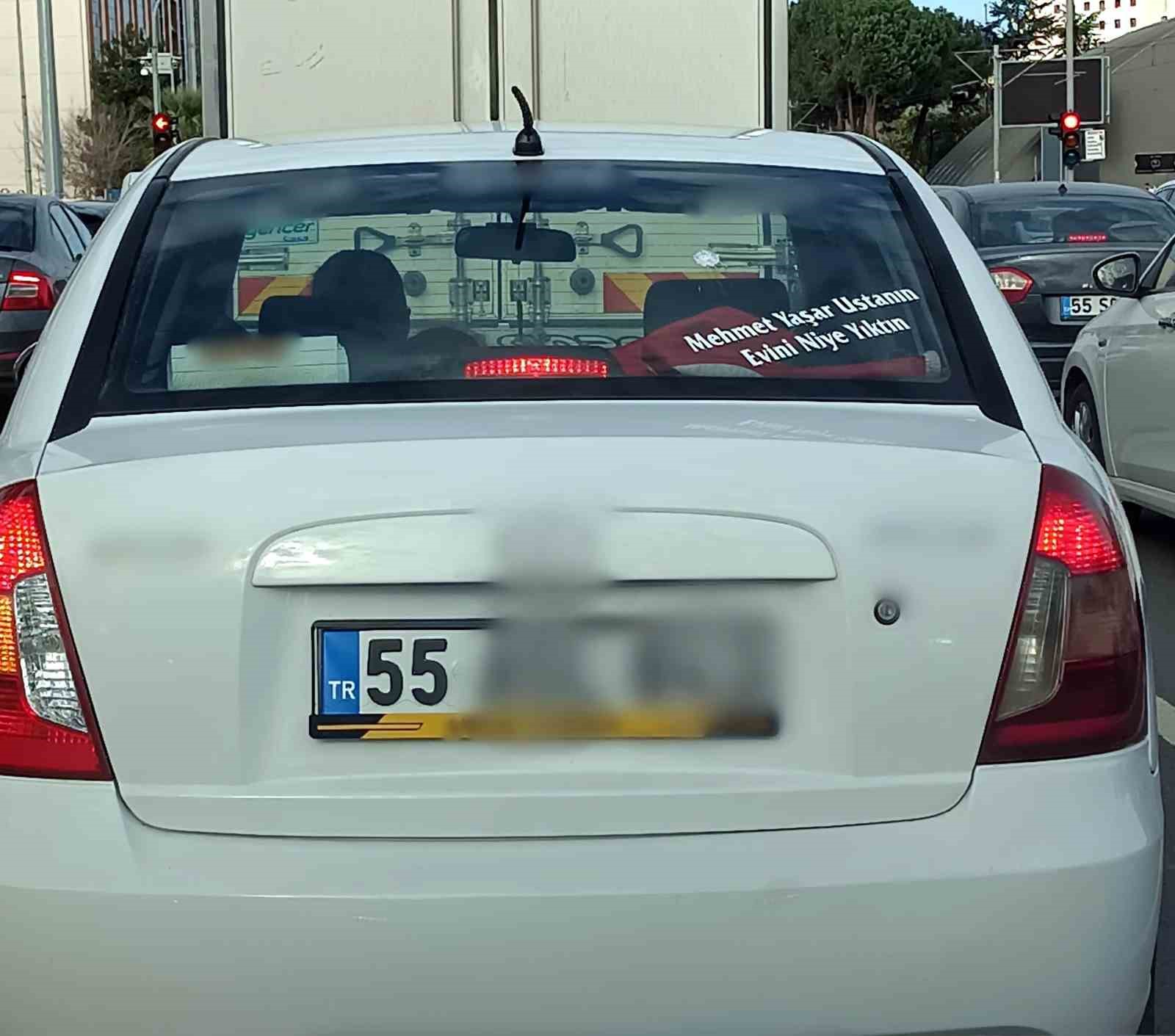 Samsun’da arabaların arkasına yazılan bazı yazılar görenlerin dikkatini çekiyor.