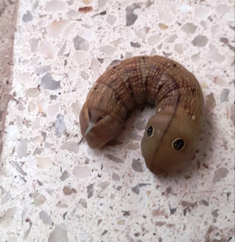 Konya’nın Kulu ilçesinde, bir kişi evlerinin balkonunda oturdukları sırada oyuncak zannettikleri kurtçuğu araştırınca "Fil Şahin Güvesi" larvası olduğunu öğrendi.