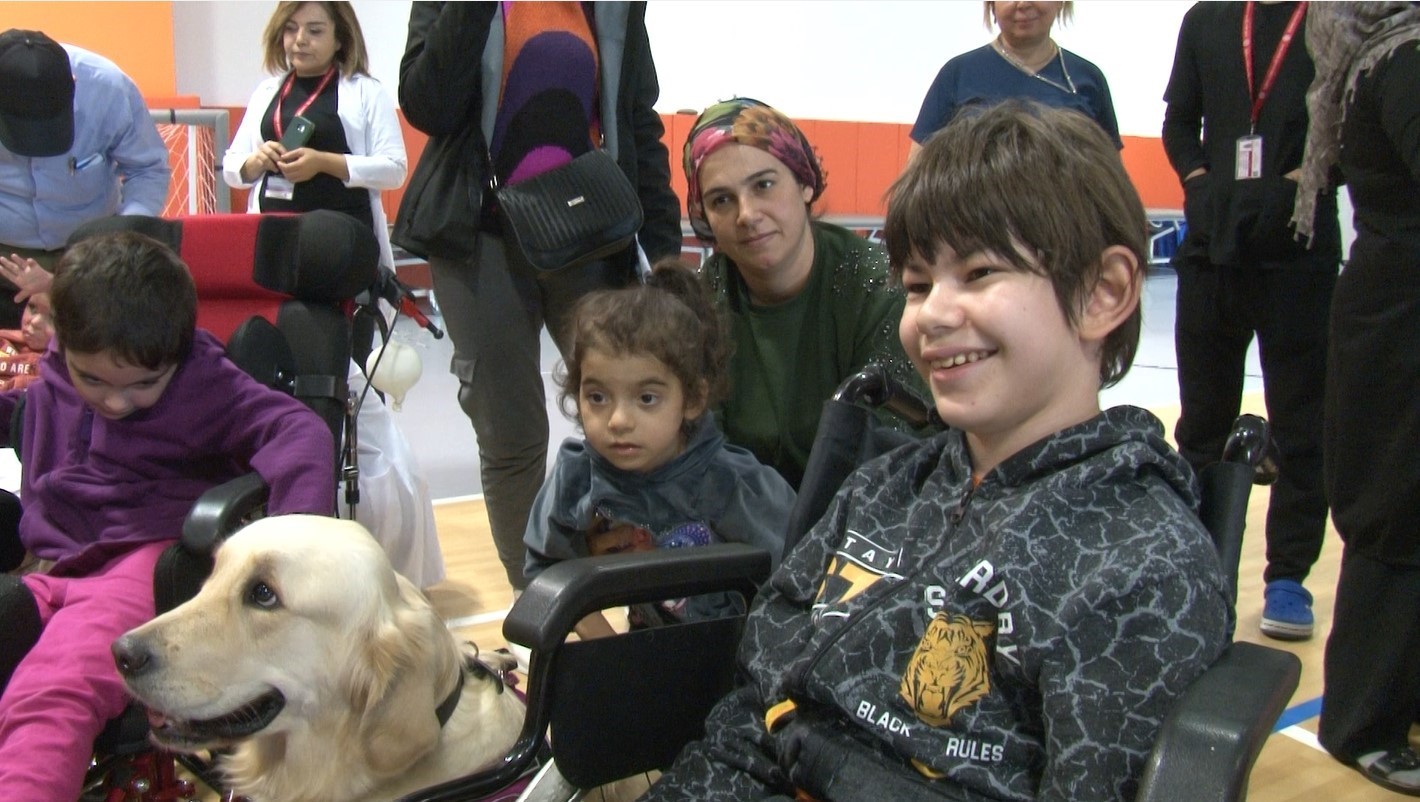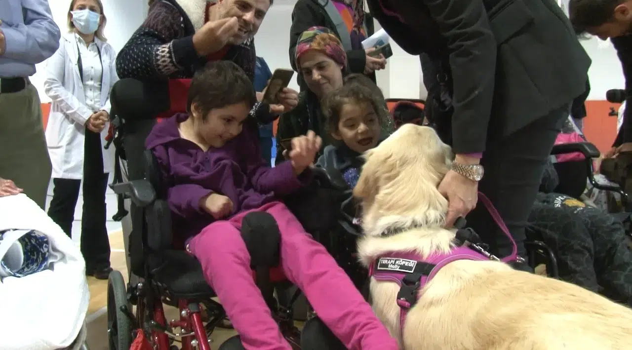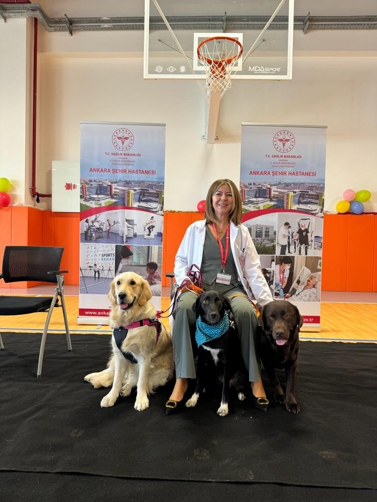 Hastalara tedavi sırasında moral ve motivasyon desteği sağlaması, yalnızlık hissini azaltması amacıyla özel eğitilen terapi köpekleri, Bilkent Şehir Hastanesi Fizik Tedavi Rehabilitasyon Hastanesi’nde kalan çocuklarla buluştu.