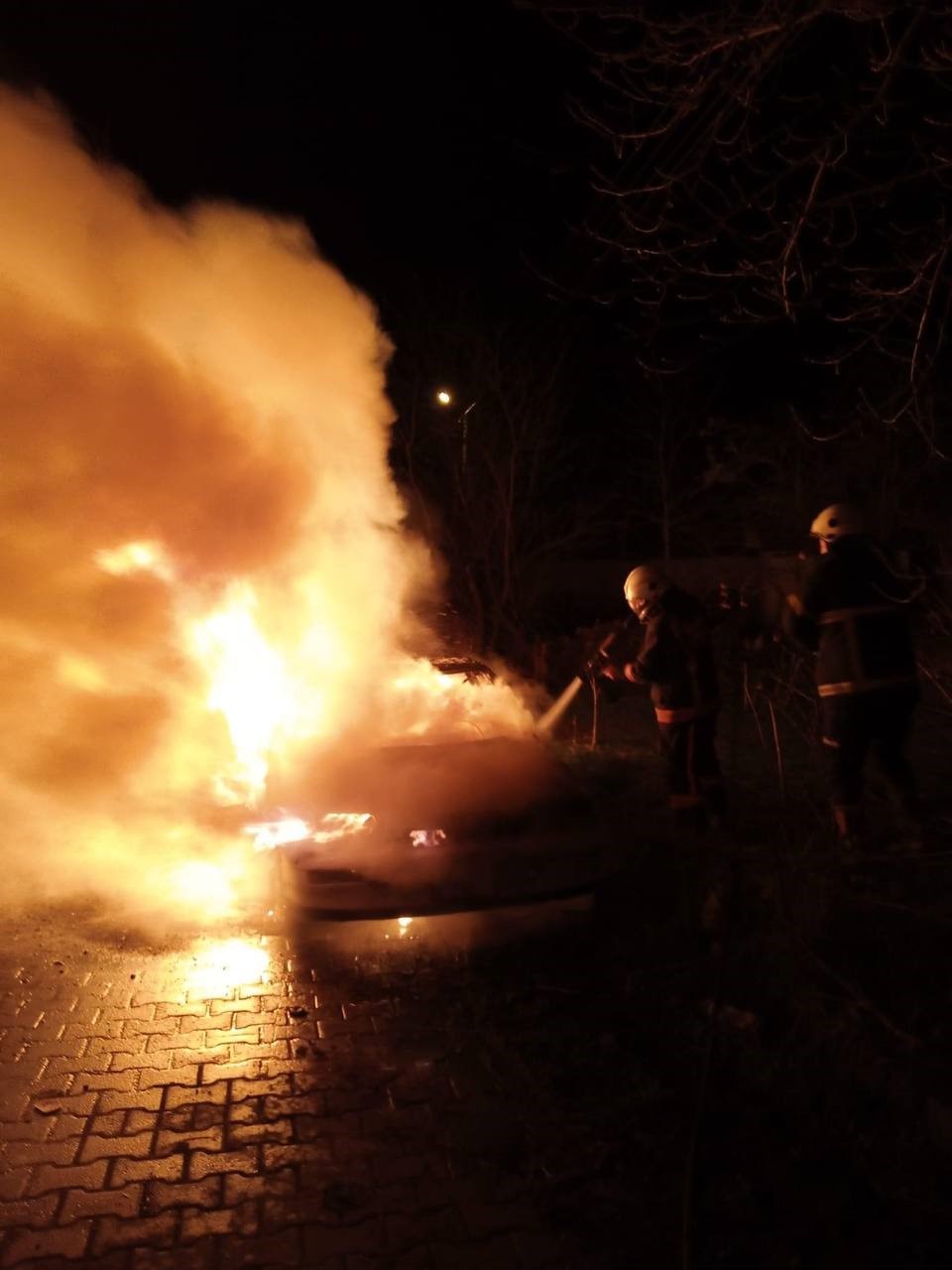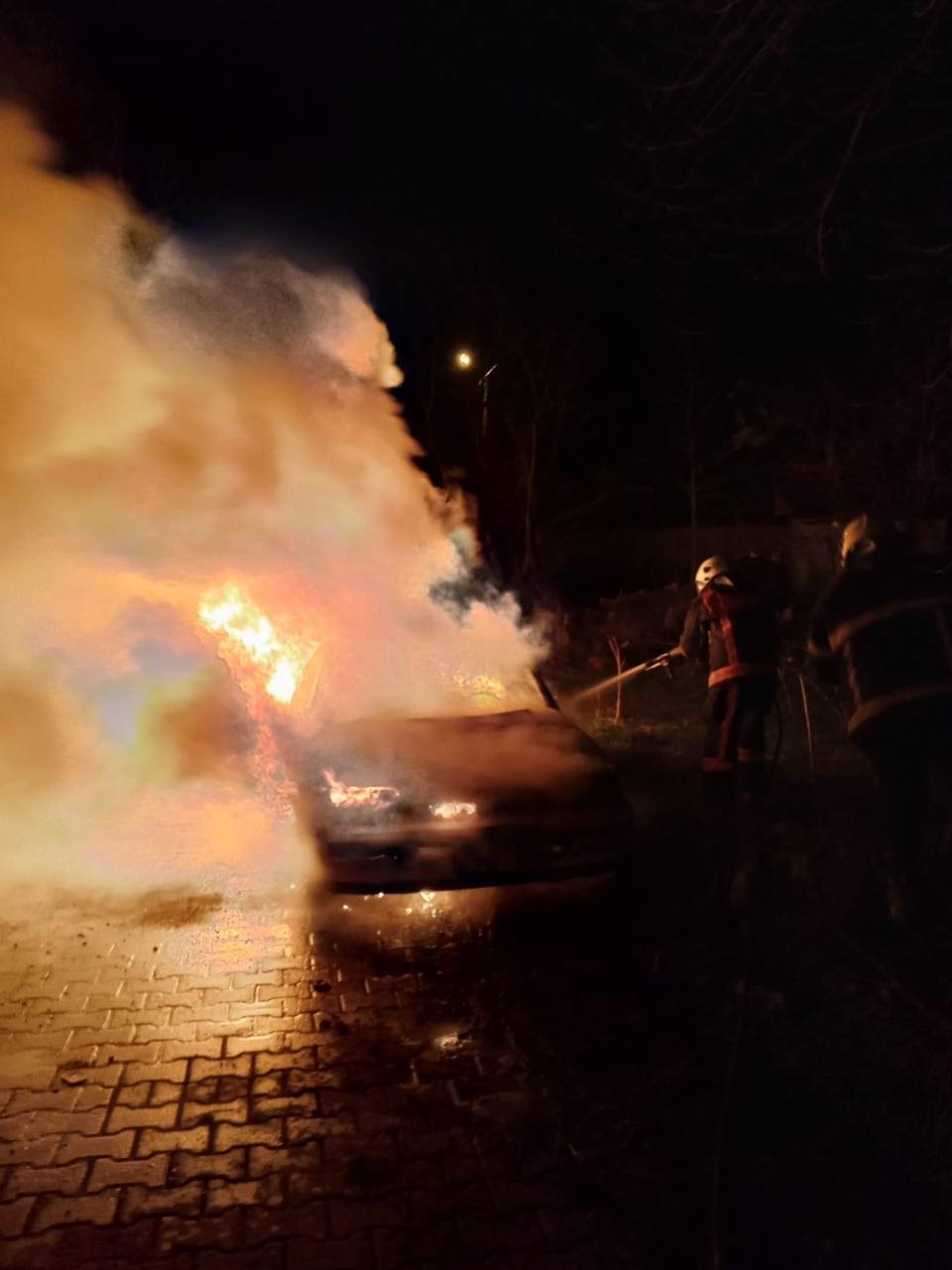 İhbar üzerine olay yerine sağlık, jandarma ve itfaiye ekipleri sevk edildi. Yangına müdahale eden itfaiye ekipleri, araçta çıkan yangını söndürdü. Alevlere teslim olan otomobil ise kullanılamaz hale geldi.