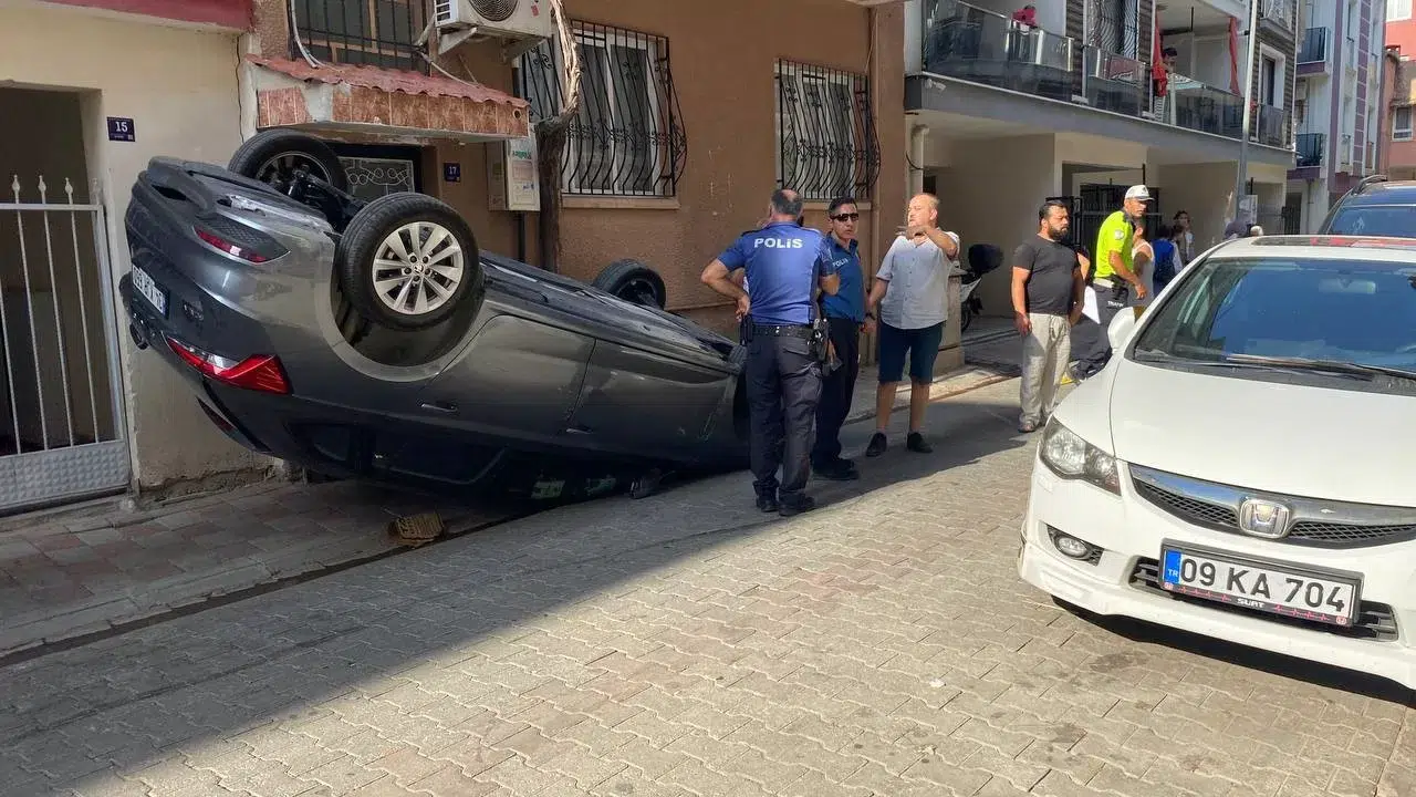 Aydın’ın Efeler ilçesinde park halindeki araca çarpan otomobilin ters dönmesi sonucu yaşanan kazada otomobil sürücüsü yaralanırken, otomobilin apartman girişini kapatması nedeniyle vatandaşlar da bir süre evlerine giremedi.