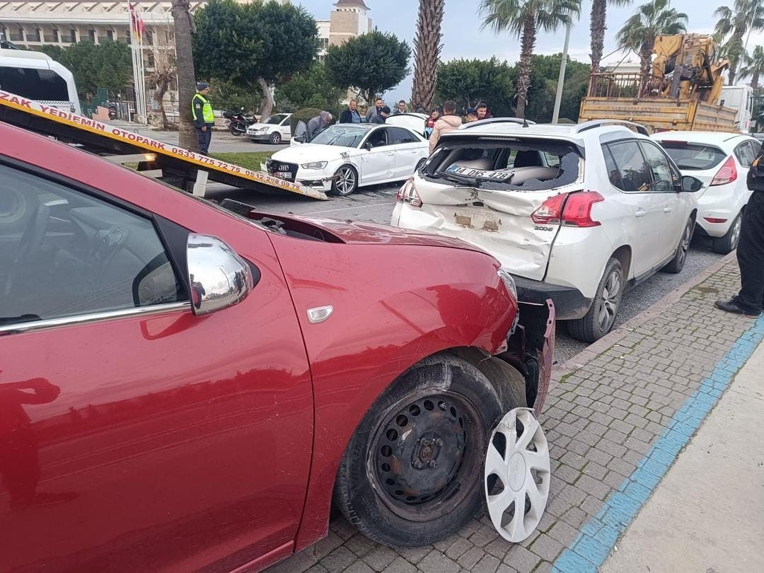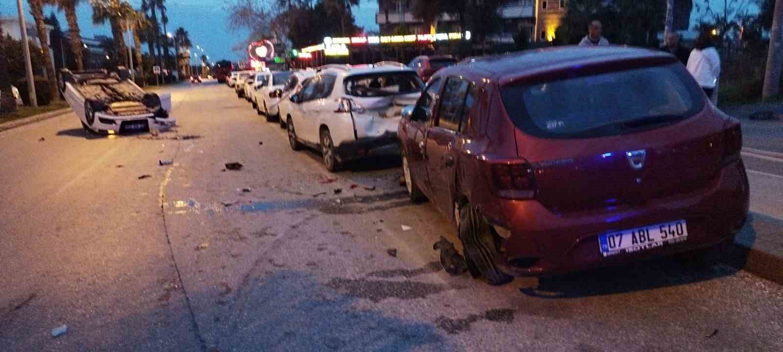 Kaza, Side Mahallesi Celal Bayar Bulvarı’nda meydana geldi. Alınan bilgiye göre; seyir halindeki 52 AD 220 plakalı otomobilin sürücüsü direksiyon hakimiyetini kaybetti. Otomobil, yol kenarında park halindeki 07 ABL 540, 34 DNS 428 ve 07 BIG 913 plakalı araçlara çarptıktan sonra takla atarak yol ortasında ters döndü. Kazanın ardından otomobilden çıkan ve adının Serkan G. olduğu bildirilen sürücünün sağlık ve jandarma ekipleri gelmeden olay yerinden kaçtığı bildirildi.