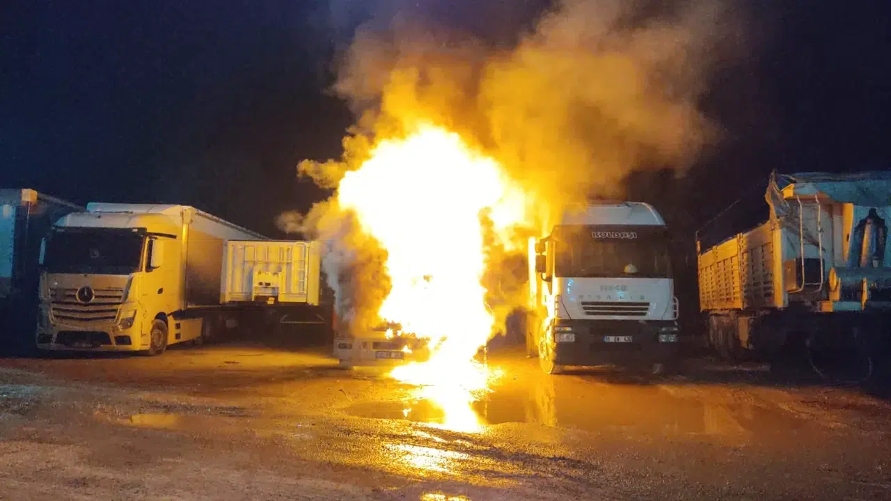Bilecik’in Bozüyük ilçesinde park halindeki tır alev alev yandı.