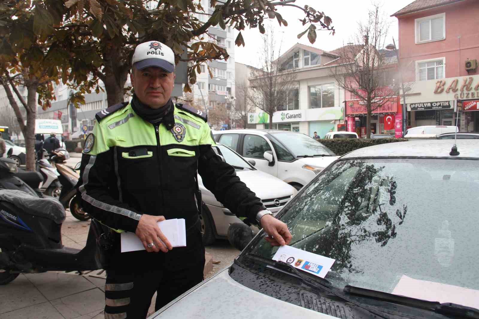 Çankırı’da kural ihlali yapan sürücülere yönelik olarak İl Emniyet Müdürlüğü ekiplerince denetim gerçekleştirildi. Engelli bireylere yönelik olarak ayrılmış park yerleri ve engelli rampaları, yaya geçitleri gibi alanlarda park ihlali yapan sürücülerin araçlarının sileceklerine Çankırı Valisi Mustafa Fırat Taşolar’ın imzasını taşıyan farkındalık mektubu bırakıldı. Sürücülerin bilinçlenmesi amacıyla yapılan farkındalık çalışması çerçevesinde, polis ekipleri park ihlali yapan tüm araçların sileceklerine mektupları bıraktı.