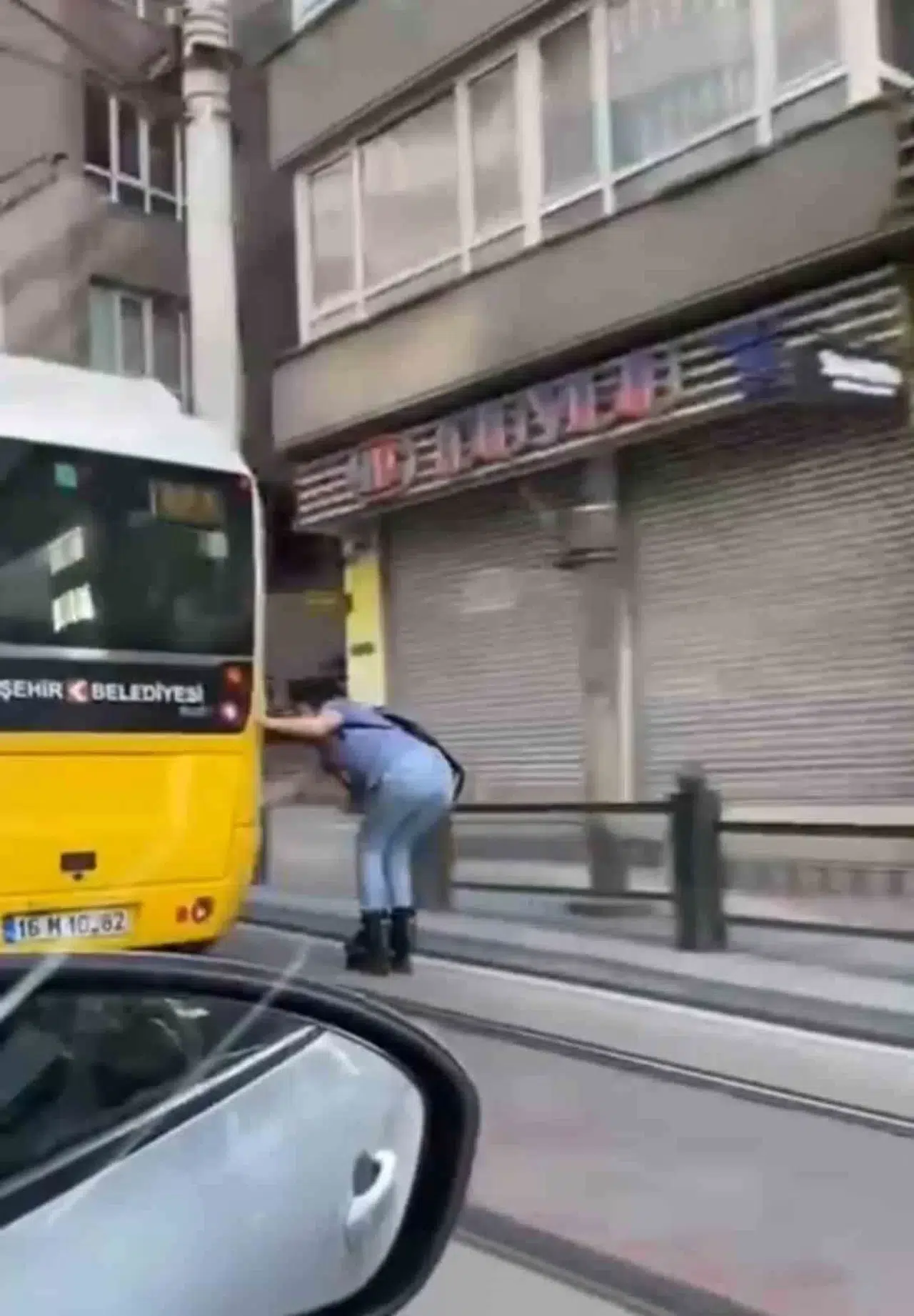 Olay, Osmangazi ilçesi Altıparmak Caddesi üzerinde meydana geldi. Ayaklarında paten bulunan bir genç, toplu taşıma minibüsünün arkasına takıldı. Aracın arkasına tutunarak yolculuk yapan genci fark etmeyen minibüs şoförü ise bir süre seyre devam etti. Gencin tehlikeli yolcuğu kameraya yansırken, görüntülendiği anladığı an tutunduğu aracı bırakmak zorunda kaldı. Yürekleri ağza getiren yolculuk 2 yıl önce 1 kişinin öldüğü, 1 kişinin de yaralandığı feci kazayı hatırlattı.