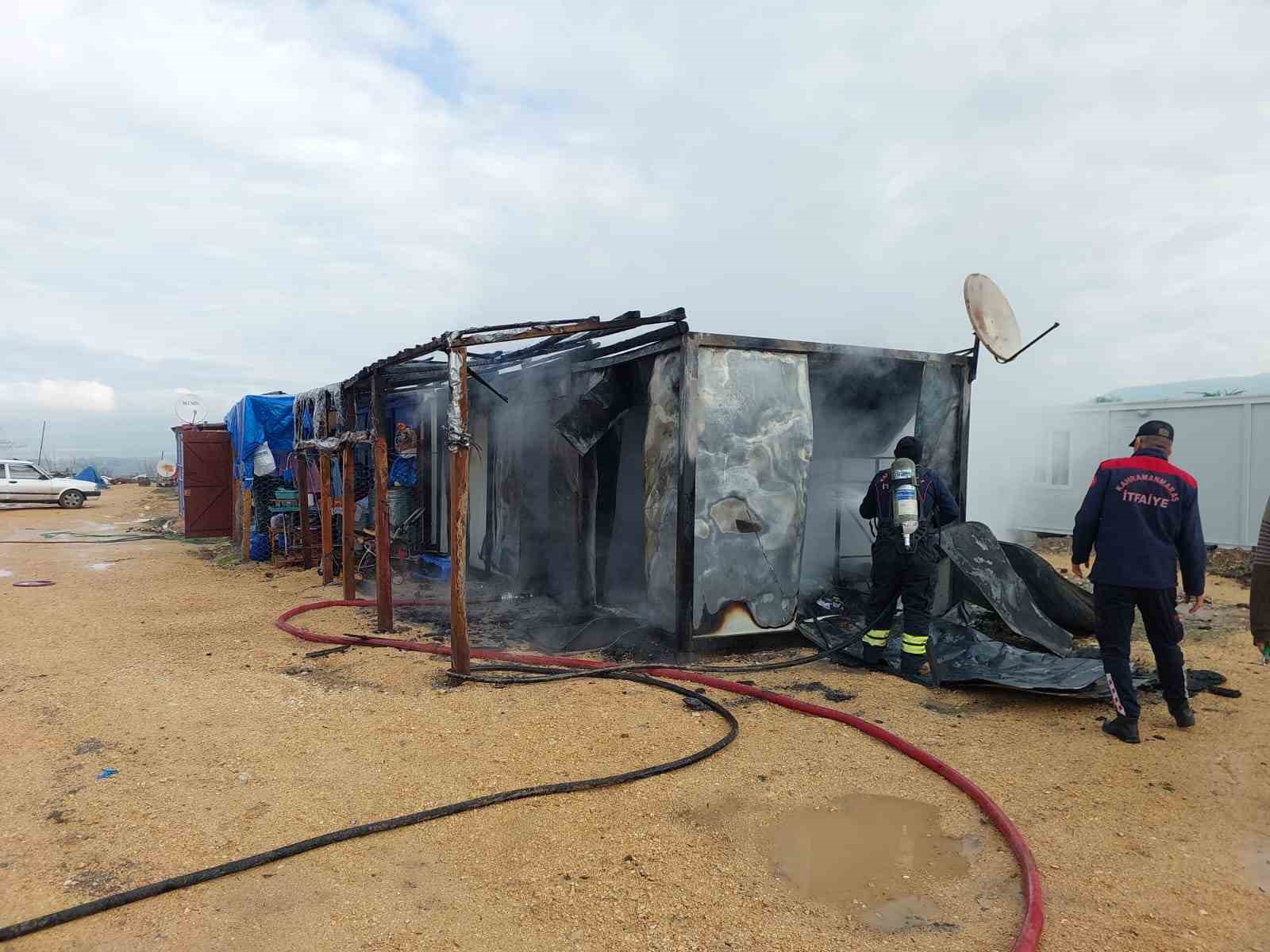 Kahramanmaraş’ın Pazarcık ilçesinde çıkan yangında bir konteyner kullanılamaz hale geldi.