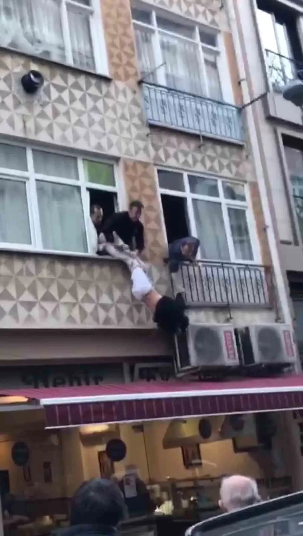 Olay, geçtiğimiz günlerde Pendik’te meydana geldi. İddiaya göre elleri kelepçeli bir halde götürüldüğü hastaneden kaçan şahıs Batı Mahallesinde bir eve saklandı. Ev sahibinin ihbarı üzerine olay yerine polis ekipleri sevk edildi. Polis ekiplerini gören şahıs camdan sarkarak kaçmaya çalıştı. Polislerin ve vatandaşların bacaklarından tutmasıyla şahıs evin camında asılı kaldı. Bina sakinlerinden biri balkon demirinden tutunan şahsa ellerini bırakması için sopayla vurdu. Olayı gören mahalleli sokağa döküldü. Kelepçesi açılan şahıs bir dükkanın tentesinin üzerine düştü. Mahalle sakinleri tenteden aldıkları şahsı polis ekiplerine teslim etti.