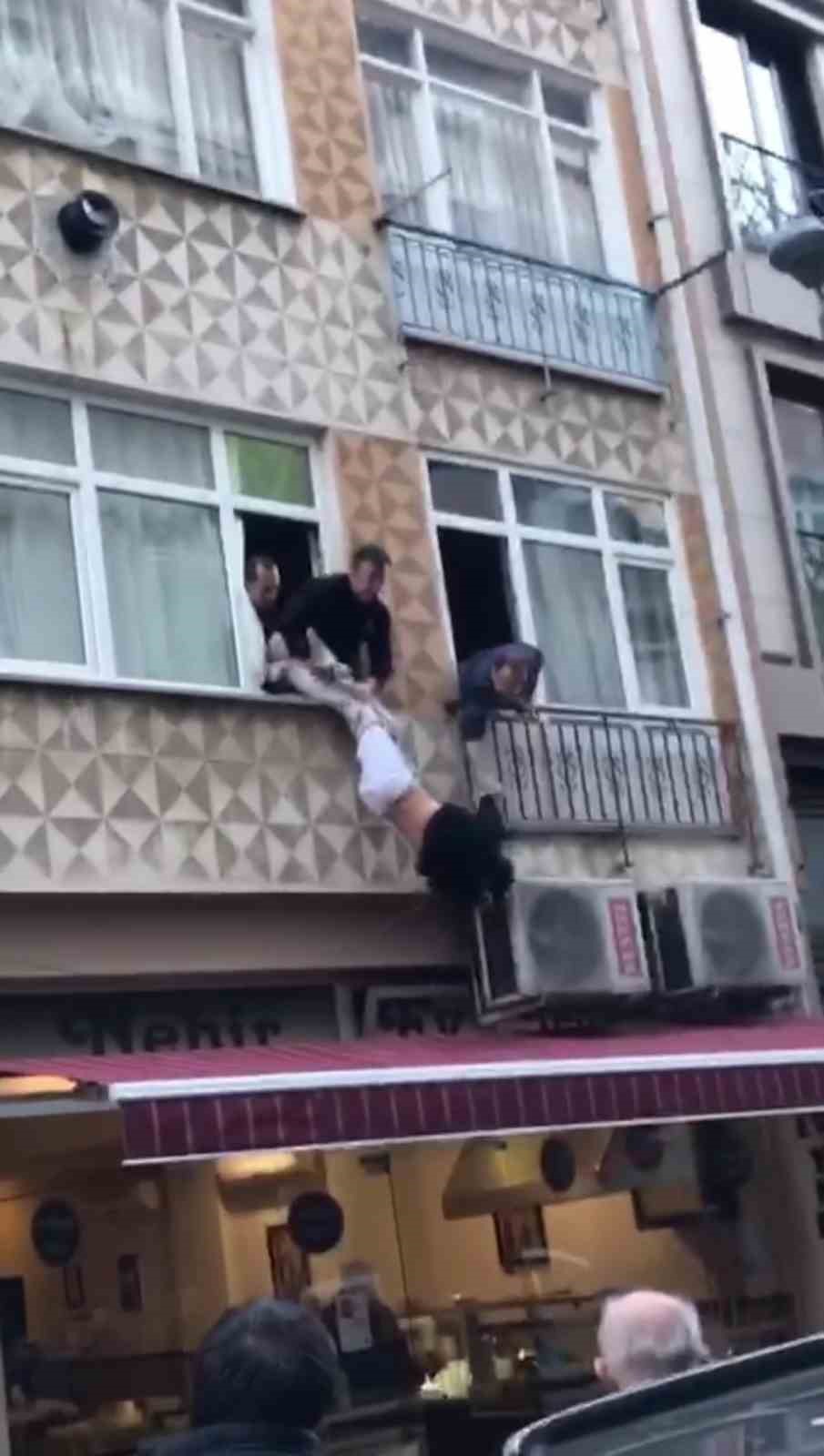 Pendik’te elleri kelepçeli halde götürüldüğü hastaneden kaçan şahıs bir eve saklandı. Ev sahibinin polise ihbarı üzerine şahıs camdan sarkarak kaçmaya çalışırken, polislerin ve vatandaşların bacaklarından tutmasıyla camda asılı kaldı. Korku dolu o anlar cep telefonu kamerasına yansıdı.