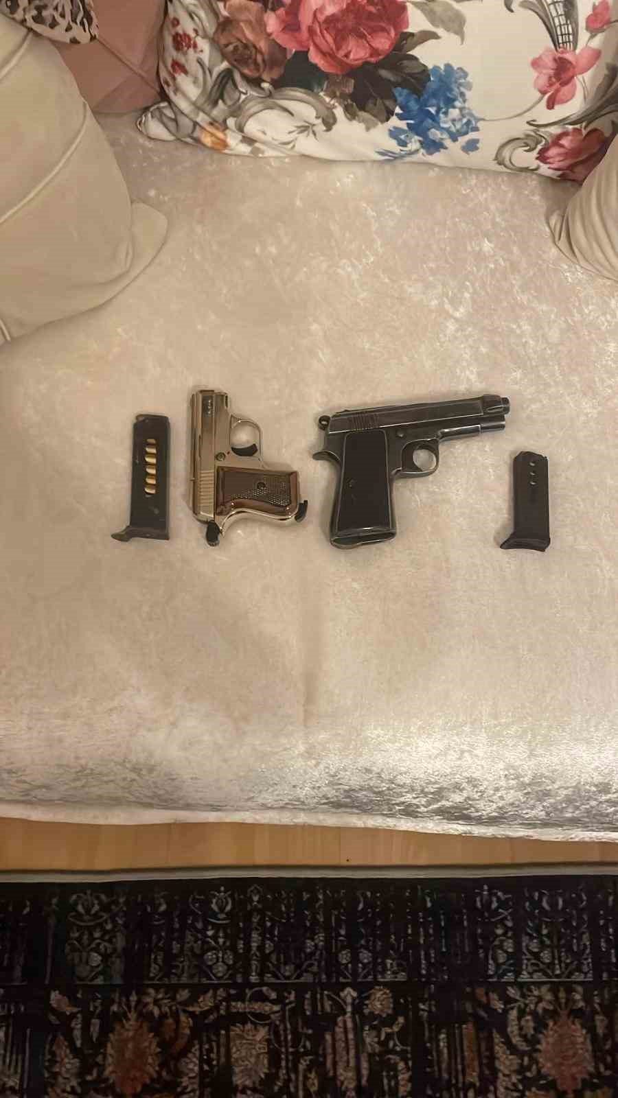 Konu ile ilgili olarak yapılan çalışmalarda işyeri içerisinden 1 adet 7.65mm çapında kovan ele geçirildi. Eren T.(34) olduğu belirlenen şüpheli geçtiğimiz Cuma günü ikametinde yakalandı. Yapılan aramada 7.65 mm Beretta marka ve 6.35 mm Blow marka tabanca, 13 adet 7.65 mm, 4 adet 6.35 mm fişek ele geçirildi. Mevcutlu olarak sevk edilen şüpheli tutuklanarak cezaevine gönderildi.