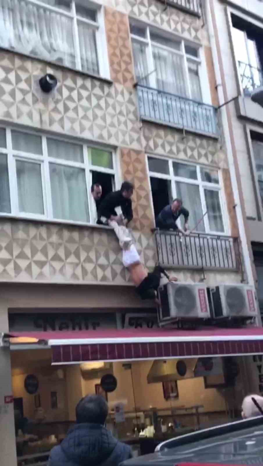 Şahsın girdiği dairede oturan Hakan Demirci, "Dün akşam saatlerinde eşim telefon açtı bana. Evde hırsız olduğunu söyledi. Ben de hemen koşarak geldim. Arka taraftan dolanıp evime girdim. Şahıs benim evden yan komşunun evine geçip içeriden kapıyı kilitledi. Şahıs camdan atlamaya kalktı. Polis arkadaşlar ayağından tutup içeriye çekmeye çalıştı. Yukarı çekemedik, bıraksaydık baş üstü düşecekti. Ben de plastik bir madde ellerine vurmaya çalıştım, kurtarmak için. Çabalarım boşuna oldu. Benim çocuğumu rehin alabilirdi, eşimi rehin alabilirdi. O zaman daha korkunç şeyler yaşanacaktı" dedi.