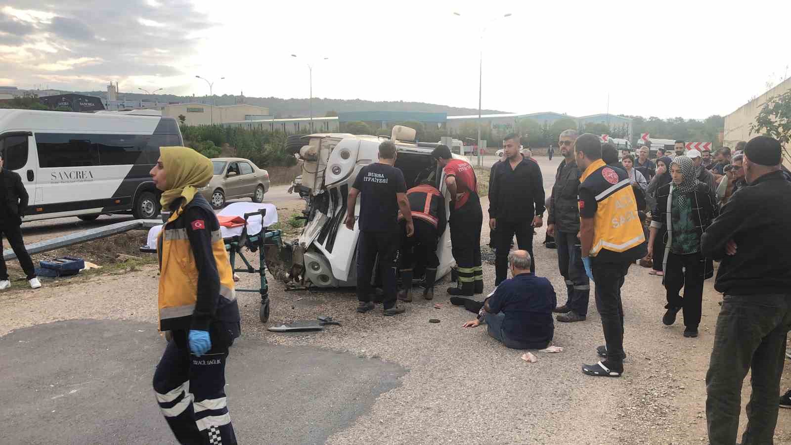 Bursa’nın İnegöl ilçesinde meydana gelen kazada kontrolden çıkarak direğe çarpan işçi servisi minibüsü devrildi; sürücü ve 12 işçi yaralandı.