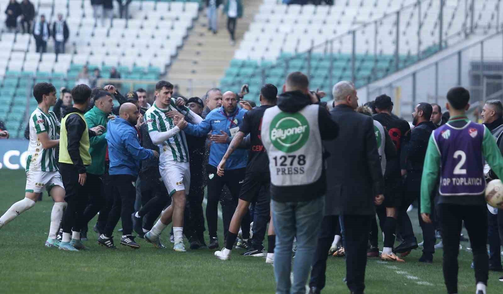 Profesyonel Futbol Disiplin Kurulu, Diyarbekirspor maçı sonrası Bursaspor’a ağır cezalar verdi. TFF’den yapılan açıklama şöyle: “Bursaspor Kulübü’nün, 20.12.2023 tarihinde oynanan Bursaspor-Diyarbekirspor TFF 2. Lig Beyaz Grup müsabakasında, taraftarlarının neden olduğu çirkin ve kötü tezahürat nedeniyle ve bu eylemin aynı sezon içinde ev sahibi kulüp olduğu müsabakada 2. kez gerçekleştirilmesinden dolayı 16 bin TL para cezası ile cezalandırılmasına, aynı müsabakada Bursaspor Kulübü’nün, taraftarlarının ve mensuplarının neden olduğu saha olayları nedeniyle 2 resmi müsabakayı kendi sahasında seyircisiz oynama ve 56 bin TL para cezası ile cezalandırılmasına, aynı müsabakada Bursaspor Kulübü’nün, statüye aykırılık nedeniyle ihtar cezası ile cezalandırılmasına, aynı müsabakada Bursaspor Kulübü’nün, takım halinde sportmenliğe aykırı hareketi nedeniyle 6 bin 750 TL para cezası ile cezalandırılmasına, aynı müsabakada Bursaspor Kulübü sporcusu Ozan İsmail Koç’un, rakip takım mensubuna yönelik sportmenliğe aykırı hareketi nedeniyle 2 resmi müsabakadan men ve 18 bin TL para cezası ile cezalandırılmasına, aynı müsabakada Bursaspor Kulübü sporcusu Bilal Güney’in, rakip takım mensubuna yönelik sportmenliğe aykırı hareketi nedeniyle 2 resmi müsabakadan men ve 18 bin TL para cezası ile cezalandırılmasına, aynı müsabakada Bursaspor Kulübü sporcusu Çağatay Yılmaz’ın, rakip takım mensubuna yönelik saldırısı nedeniyle, çift sarı kart görmesinden dolayı yer almaması gereken müsabaka dışında ayrıca 6 resmi müsabakadan men ve 10 bin 800 TL para cezası ile cezalandırılmasına, aynı müsabakada Bursaspor Kulübü sporcusu Canberk Yurdakul’un, rakip takım mensubuna yönelik saldırısı nedeniyle 5 resmi müsabakadan men ve 9 bin TL para cezası ile cezalandırılmasına, aynı müsabakada Bursaspor Kulübü sporcusu Eren Tunalı’nın, rakip takım mensubuna yönelik saldırısı nedeniyle 5 resmi müsabakadan men ve 9 bin TL para cezası ile cezalandırılmasına, aynı müsabakada Bursaspor Kulübü sporcusu Talha Yakın’ın, rakip takım mensubuna yönelik saldırısı nedeniyle 5 resmi müsabakadan men ve 9 bin TL para cezası ile cezalandırılmasına, aynı müsabakada Bursaspor Kulübü sporcusu Ertuğrul Kurtuluş’un, rakip takım mensubuna yönelik sportmenliğe aykırı hareketi nedeniyle 1 resmi müsabakadan men ve 9 bin TL para cezası ile cezalandırılmasına, aynı müsabakada Bursaspor Kulübü sporcusu Mustafa Genç hakkında, FDT’nin 85/4. ve 44. maddeleri uyarınca 23.12.2023 tarihinden itibaren idari tedbir konularak savunmasının istenmesine karar verilmiştir."