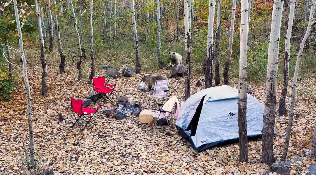 Piknikçilerin Çadırına Dadanan Ayılar Dron Kamerasına Yakalandı