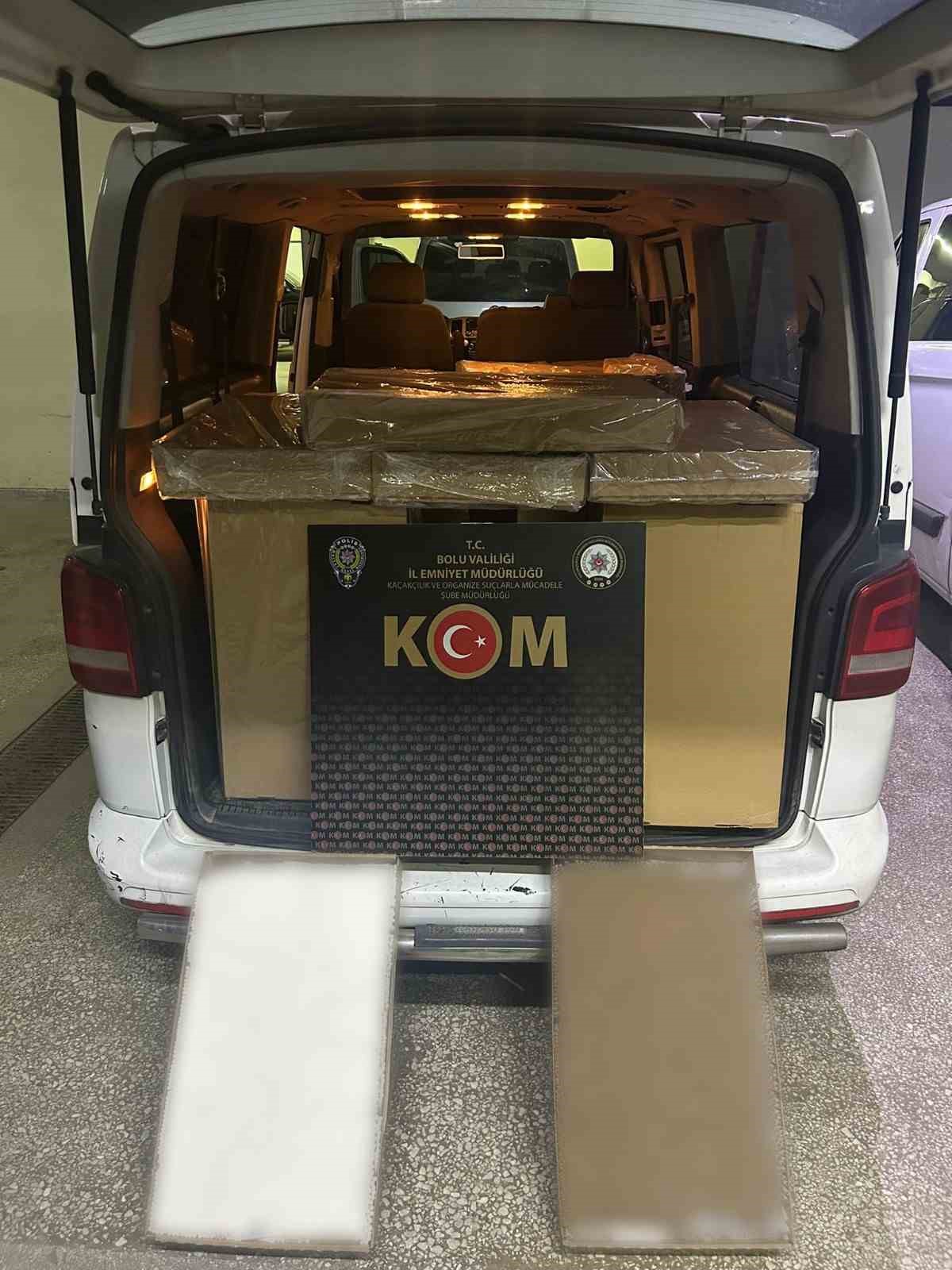 Bolu Emniyet Müdürlüğü ekiplerince Kaçakçılık ve Organize Suçlarla Mücadele Şube Müdürlüğü ekiplerinin şehir genelinde kaçakçılığa yönelik operasyonları devam ediyor. Edinilen bilgiye göre, ekipler tarafından seyir halindeki hafif ticari araç, uygulama noktasında durduruldu. U.A. (33) idaresindeki hafif ticari araç içerisinde aramalar ve kimlik sorgulamaları yapıldı. Ekiplerin yapmış olduğu aramalar neticesinde aracın bagajından piyasa değeri yaklaşık 650 bin lira olan 500 bin adet boş makaron ele geçirildi. Olayla ilgili olarak U.A. (33), M.F.O. (57), M.A.(47) ve G.D.(47) gözaltına alındı. Şüpheliler, emniyetteki işlemlerinin ardından serbest bırakıldı.