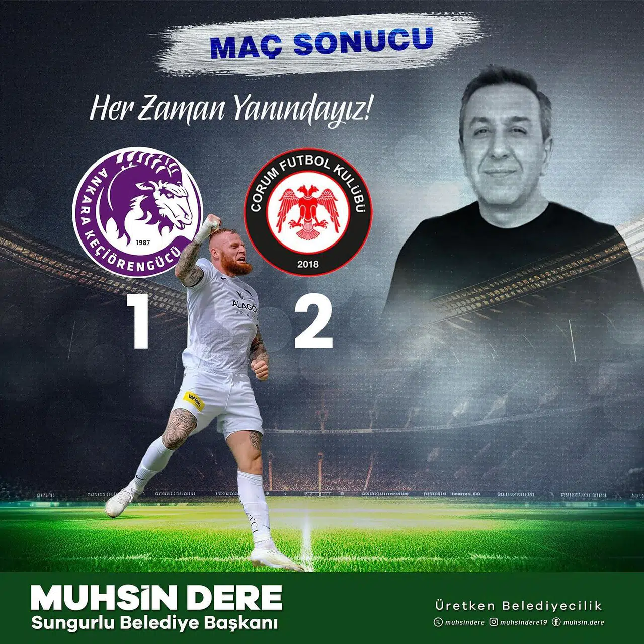 Geçtiğimiz yıl Milli Savunma Bakan Yardımcılığı görevinde iken Ahlatcı Çorum FK ile yakından ilgilenmeye başlayan Muhsin Dere, Sungurlu Belediye Başkanı olarak da ilk açıklamasını yaptı.