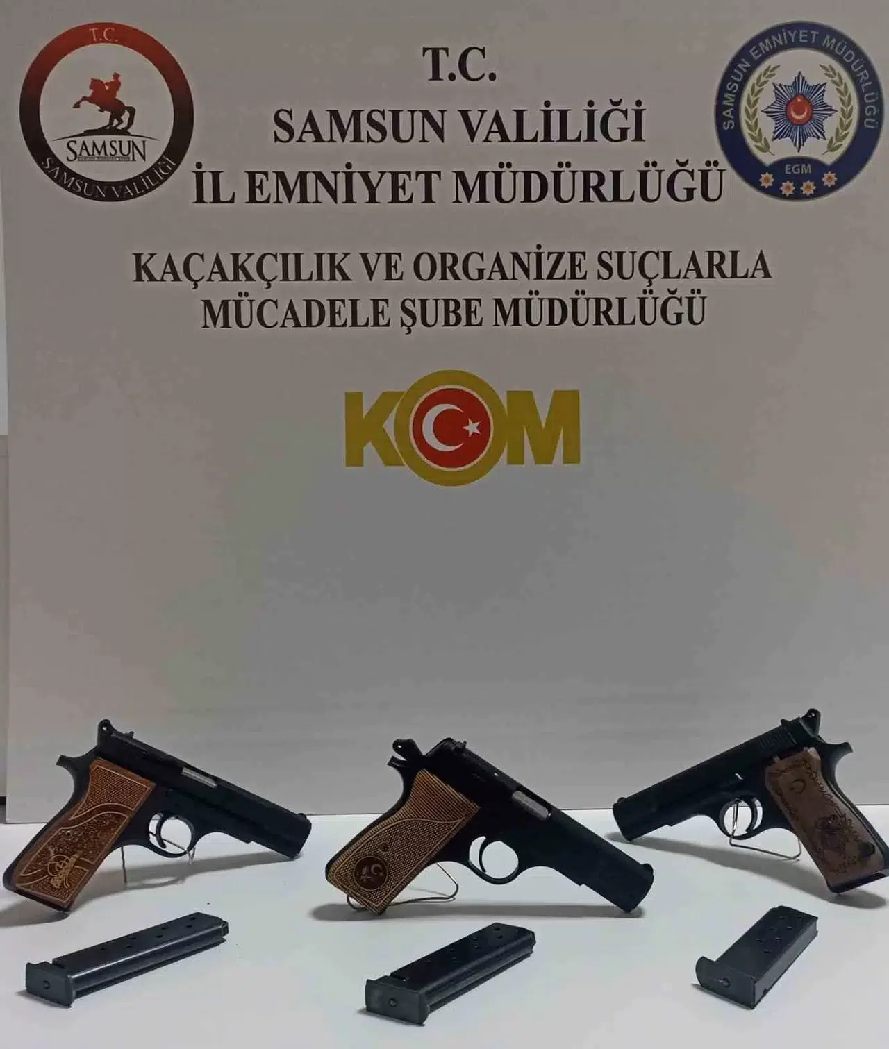 Edinilen bilgiye göre, Samsun Emniyet Müdürlüğü Kaçakçılık ve Organize Suçlarla Mücadele (KOM) Şube Müdürlüğü ile Narkotik Suçlarla Mücadele Şube Müdürlüğü ekipleri, şüphe üzerine Tekkeköy Polis Uygulama Noktasında durdurdukları otomobilde arama yaptı. Yapılan aramada, aracın kaput kısmına gizlenmiş 3 adet el yapımı olduğu değerlendirilen ruhsatsız tabanca ele geçirildi. Olayla ilgili B.K. ve İ.K. gözaltına alındı.