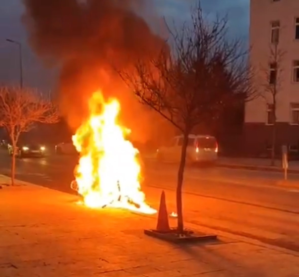 Polisin Durdurduğu Motosiklet Alev Alev Yandı