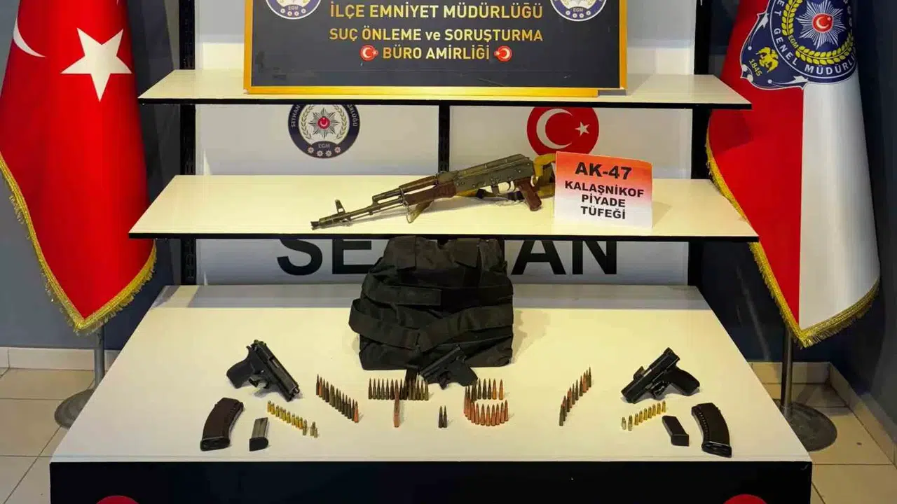 Evde yapılan arama çalışmalarında, uzun namlulu piyade tüfeği, 2 adet uzun namlulu piyade tüfeği şarjörü, 71 adet uzu namlulu piyade tüfeği mermisi, 3 adet ruhsatsız tabanca, 6 adet tabanca şarjörü, 25 adet tabanca mermisi ile 1 adet çelik yelek ele geçirdi.
